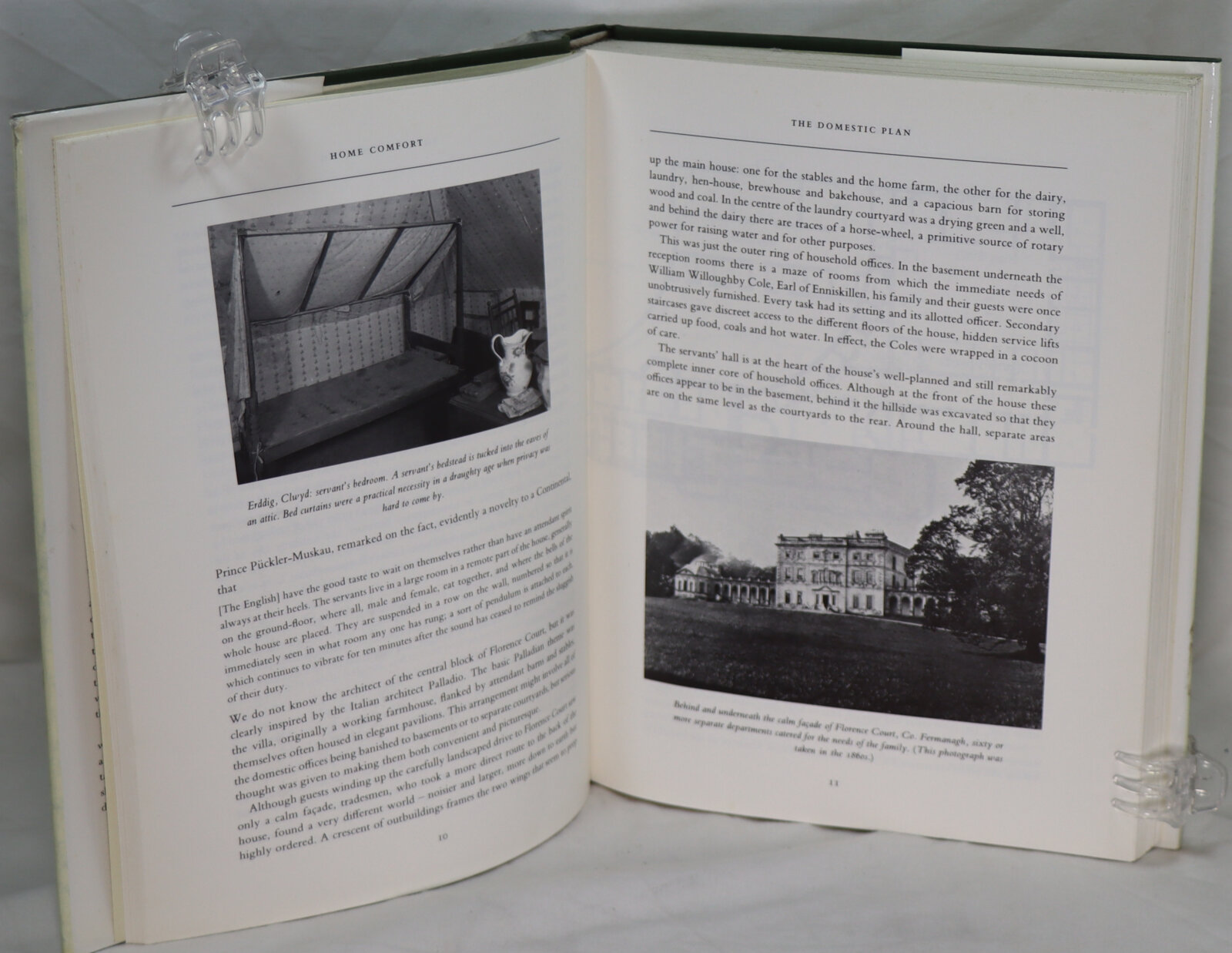 The intention of this book is to explain the workings of the domestic quarters of houses using the National Trust properties as examples. It serves as a quest for establishing how English ancestors succeeded in keeping themselves clean, warm and well-fed. The author has visited over 100 houses, mostly owned by the National Trust, ranging from stately mansions to humble farmhouses. Her descriptions include unusual lore about the operation of mangles, the management of dovecoats and the workings of water closets, obtained from housecraft manuals, National Trust archives, contemporary diaries and novels and the reminiscences of those with first-hand experience of life “below stairs”.
