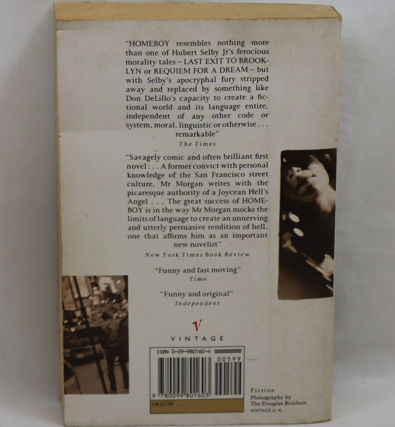 HOMEBOY, Seth Morgan’s stunning novel, is a gritty, ribald, and frenetically lyrical odyssey through the Strip in San Francisco -a netherworld of whores, pimps, dealers, and junkies – to the hell of Coldwater Penitentiary. After a high-priced hooker is killed and one of the world’s biggest diamonds is stolen, Joe Speaker, a strip-joint barker and dope addict, stumbles onto the missing jewel, is hunted down and put away for the murder. In prison, he finds that his troubles are just beginning.
