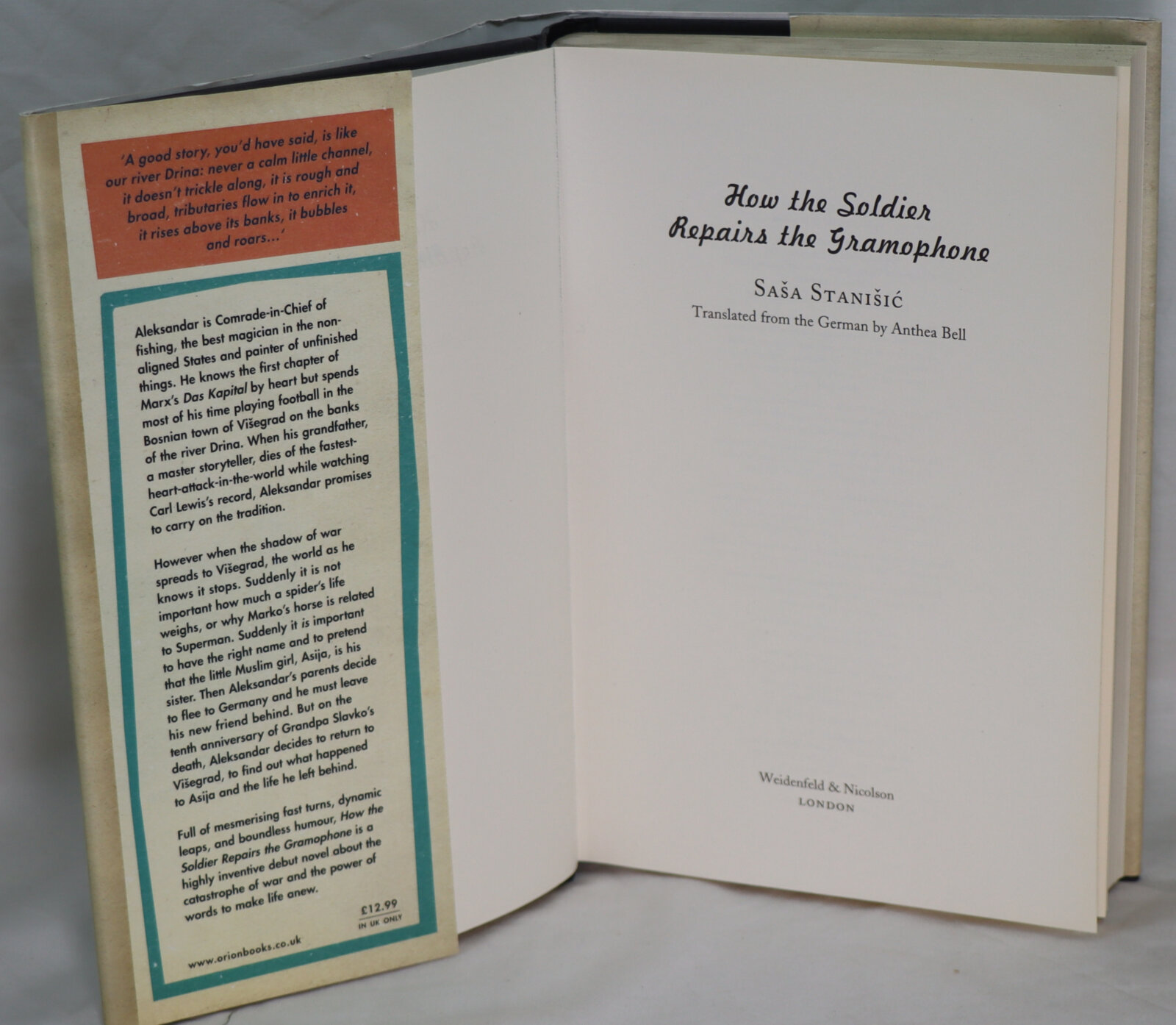 For young Aleksandar Krsmanoviæ, his grandfather Slavko’s credo–“the most valuable gift of all is invention, imagination is your greatest wealth”–endows life in Višegrad, Bosnia-Herzegovina with a mythic quality, a kaleidoscopic brilliance. So when his grandfather dies suddenly, Aleks summons this gift of storytelling to see him through his grief. It is a gift he will have to call on again when soldiers transform Višegrad–a town previously unconscious of racial and religious divides–into a nightmarish landscape of terror and violence. Though Aleks and his family flee to Germany, he is haunted by his past, and especially by Asija, the mysterious girl he tried to save. Desperate to learn of her fate, he sends manic, anguished letters out into the abyss, again turning to language to conjure all that he’s had to forfeit–his homeland, his mother tongue, his innocence. Beneath the infectious vibrancy of Stanišiæ’s voice is a sweetness and pathos that will haunt the reader long after the book ends. Powerful, vivid, funny, and devastating, How the Soldier Repairs the Gramophone captures the catastrophe of war through a child’s eyes and shows how words have the ability to mend what is broken and resurrect what is lost.