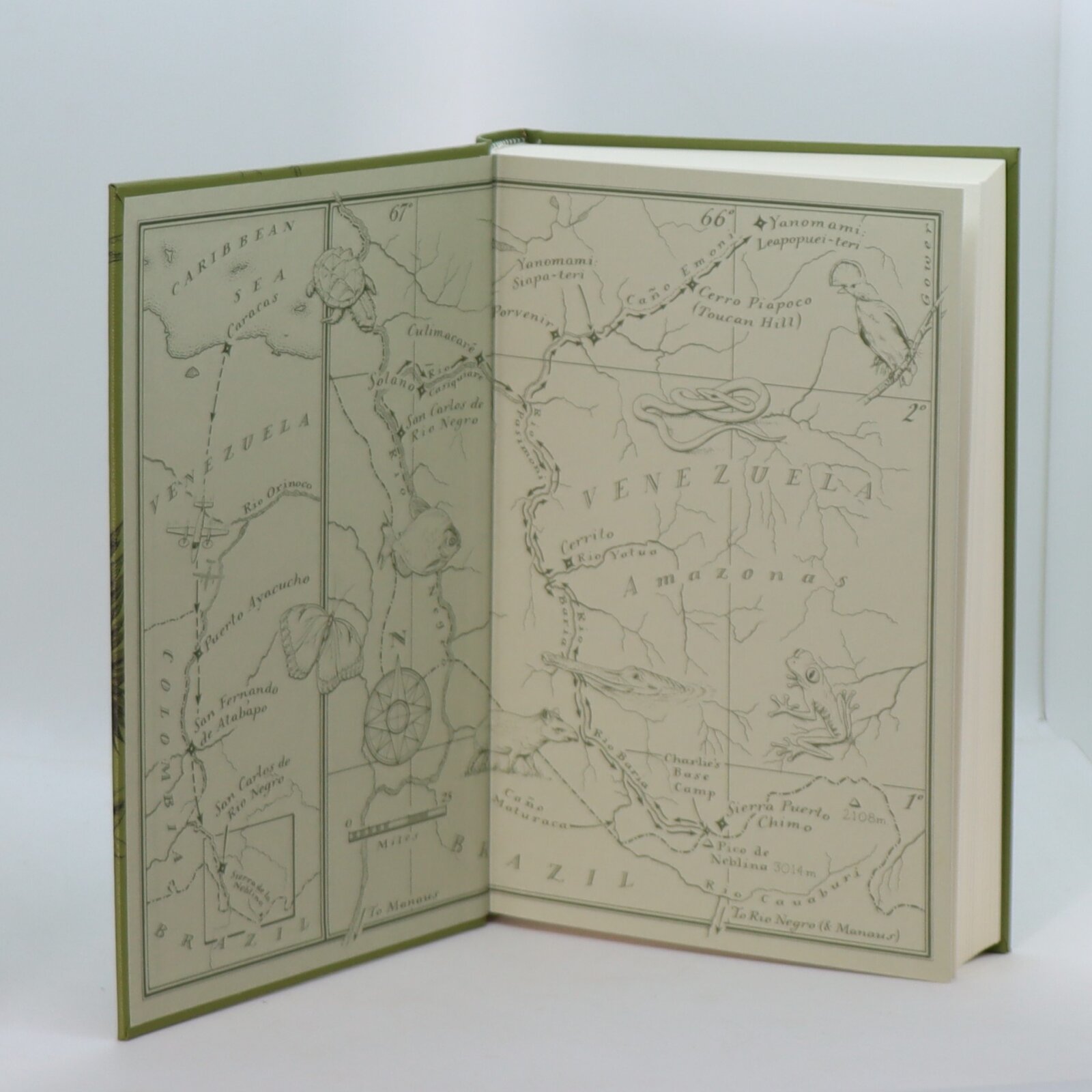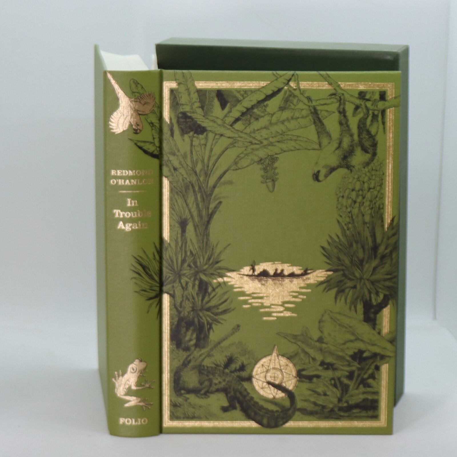 In a fitted box. Green buchram binding with gilt title, frog and parrot on the spine. Black and gilt jungle engraving on the front board.