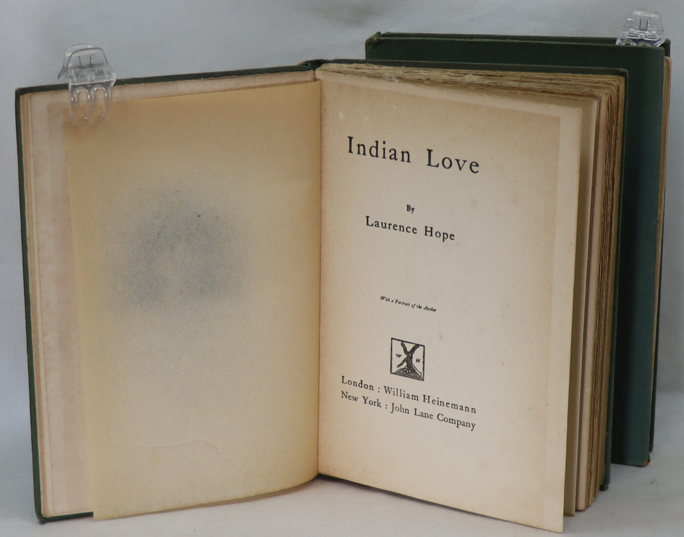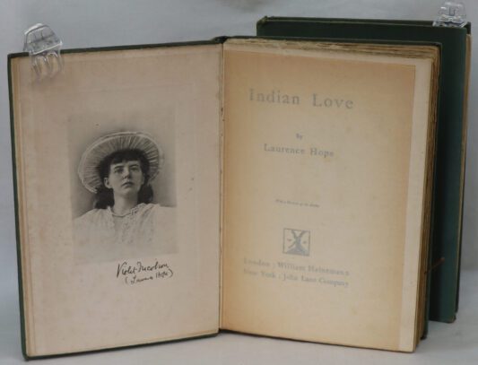 Foremost amongst erotic books collected by Jack Arnold Lang are those published by the Cory sisters. Violet Nicolson (9 April 1865 – 4 October 1904), otherwise known as Adela Florence Nicolson (née Cory), was an English poet who wrote under the pseudonym Laurence Hope. In the early 1900s, she became a best-selling author. Her sisters Annie Sophie Cory and Isabel Cory also pursued writing careers: Annie wrote popular, racy novels under the pseudonym “Victoria Cross,” while Isabel assisted and then succeeded their father as editor of the Sind Gazette.