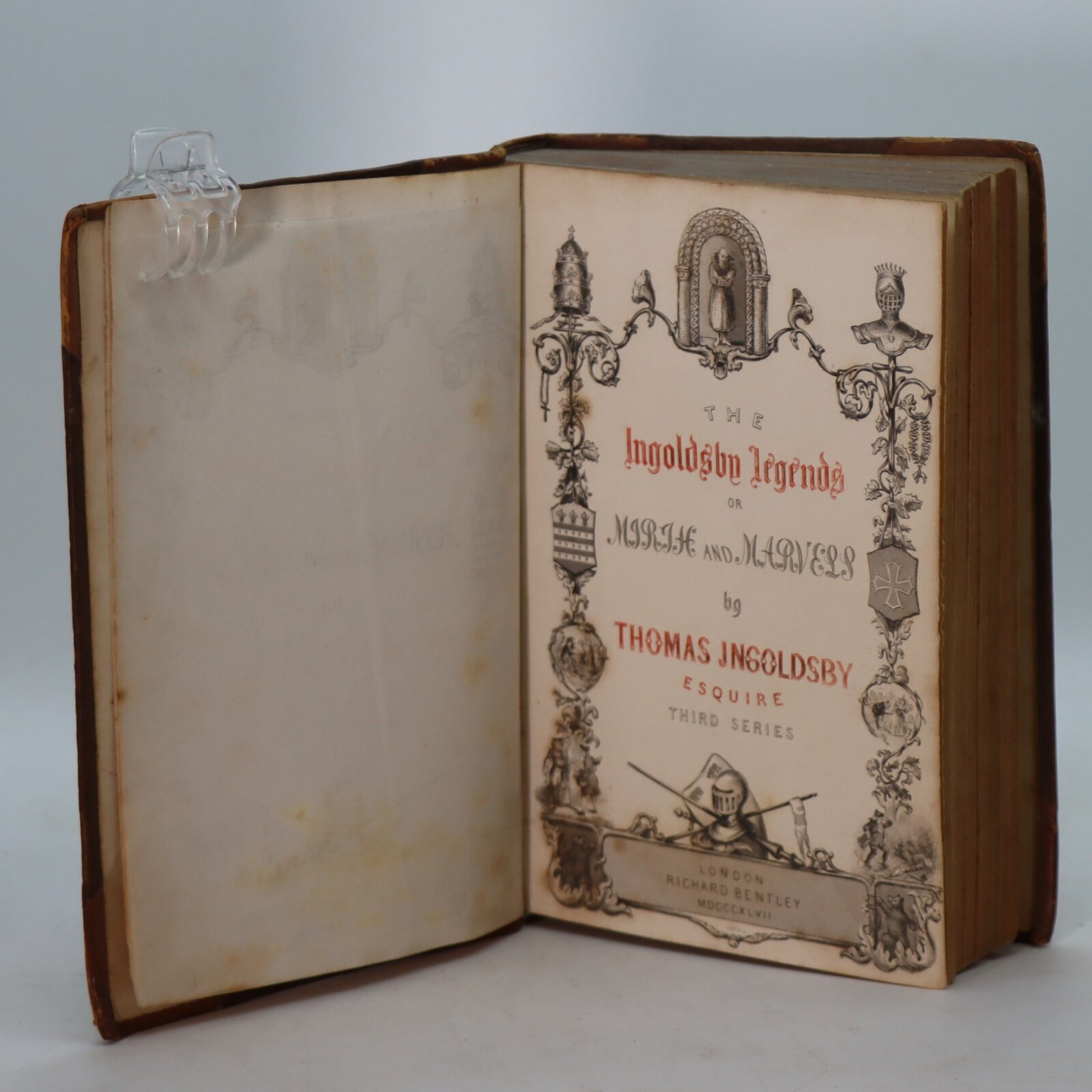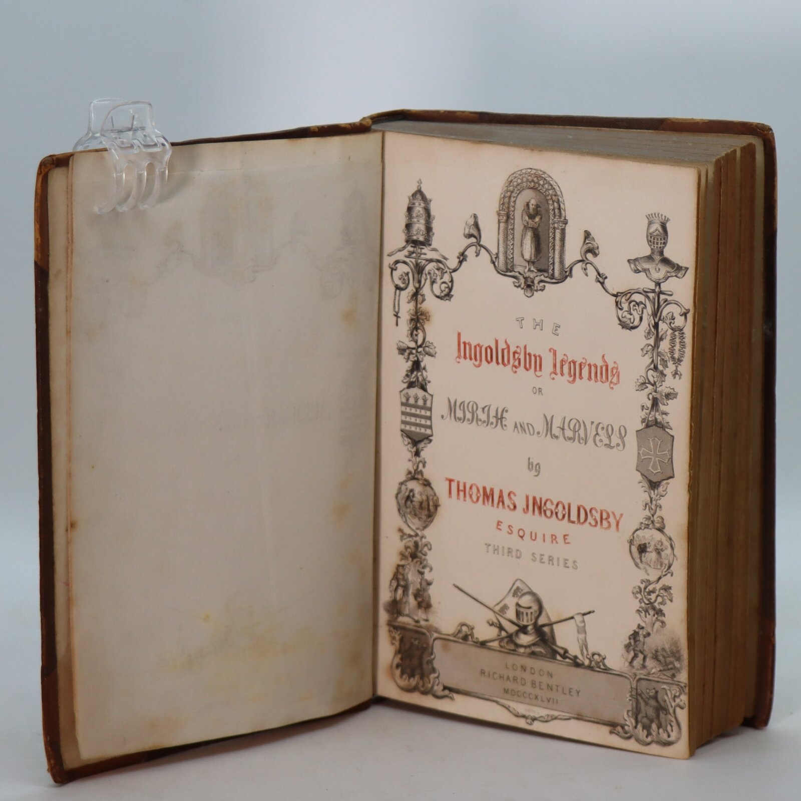 The legends were first printed during 1837 as a regular series in the magazine Bentley’s Miscellany and later in New Monthly Magazine. They proved immensely popular and were compiled into books published in 1840, 1842 and 1847 by Richard Bentley. They remained popular during the 19th century, when they ran through many editions. They were illustrated by artists including John Leech, George Cruikshank, John Tenniel, and Arthur Rackham (1898 edition).