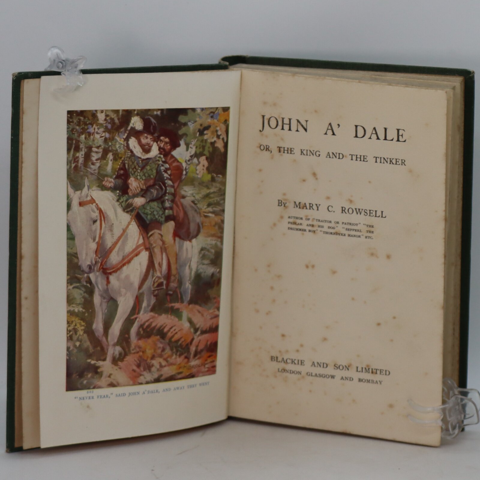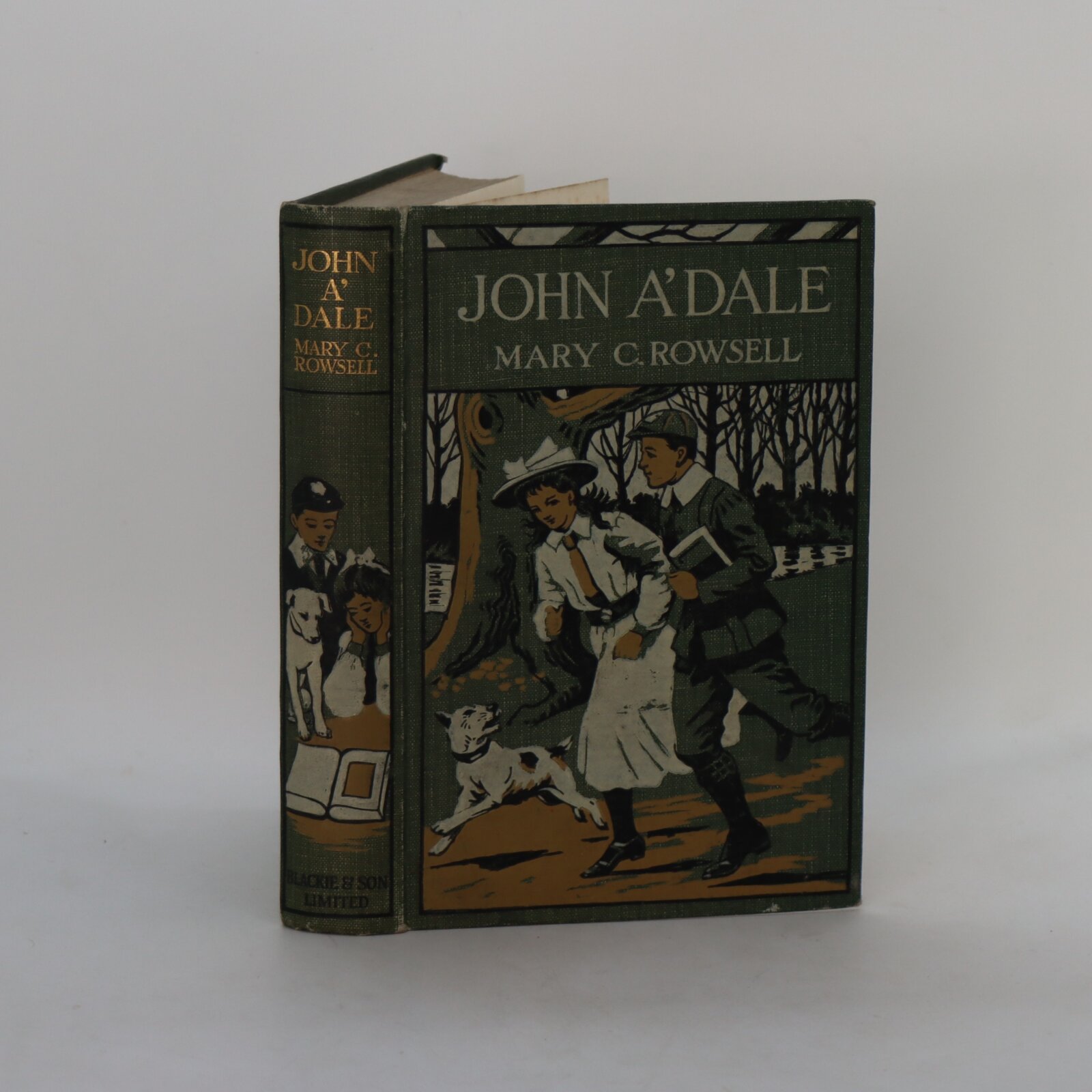 Green cloth binding with gilt title and children image on the spine and on the front board.
