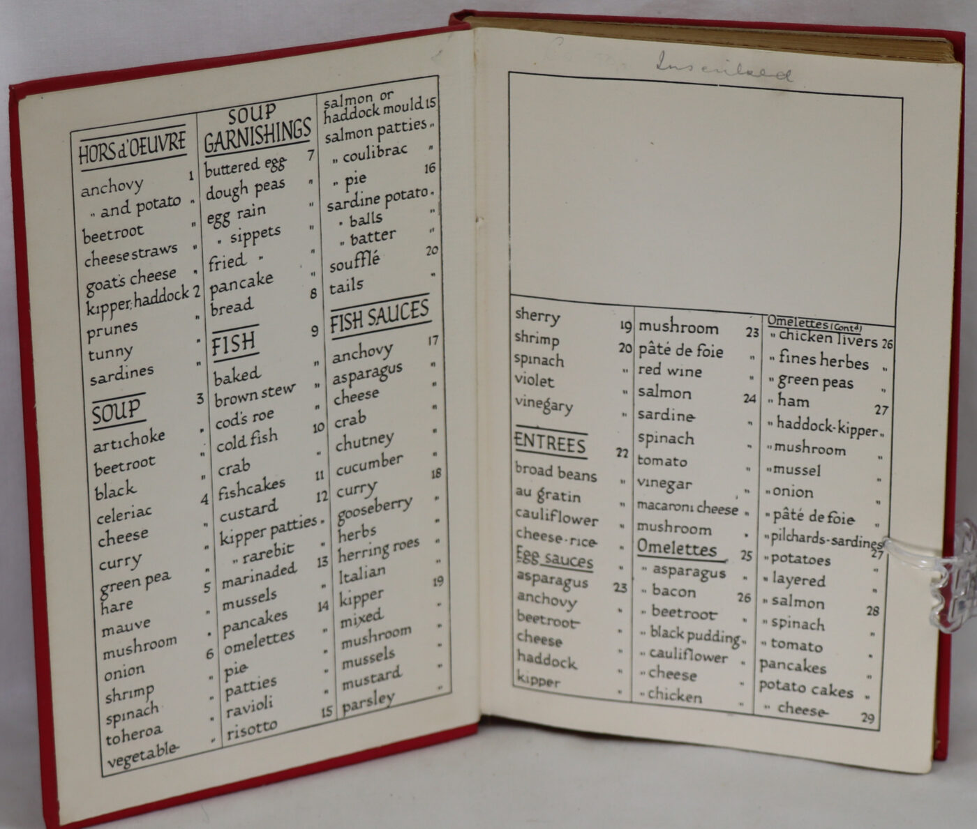 A first signed edition from English innkeeper John Fothergill. Illustrated with a portrait frontispiece, five plates, and six in-text figures. A collection of known recipes with the author’s own modifications and guides to preparation, as well as a number of original dishes and sauces produced over twenty years of innkeeping. With recipes for all sorts of meals and snacks from cheese straws to kipper rarebit. Written by John Rowland Fothergill, an English innkeeper and entrepreneur, described as a “pioneer amateur innkeeper” in Who’s Who. The pages are very bright and clean. A great collectors book.