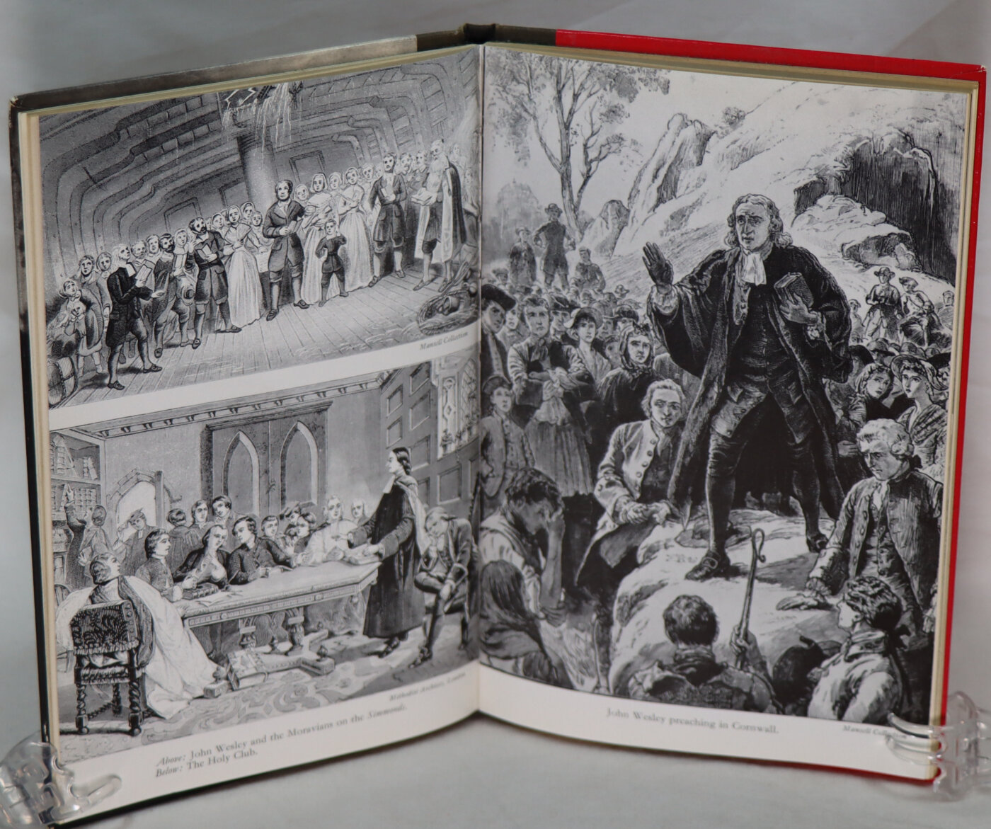 Grey cloth spine with red title. Image of John Wesley with red title on the front board.