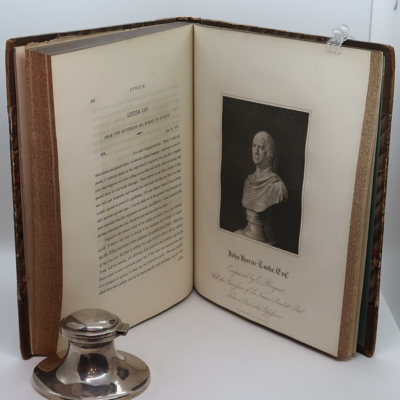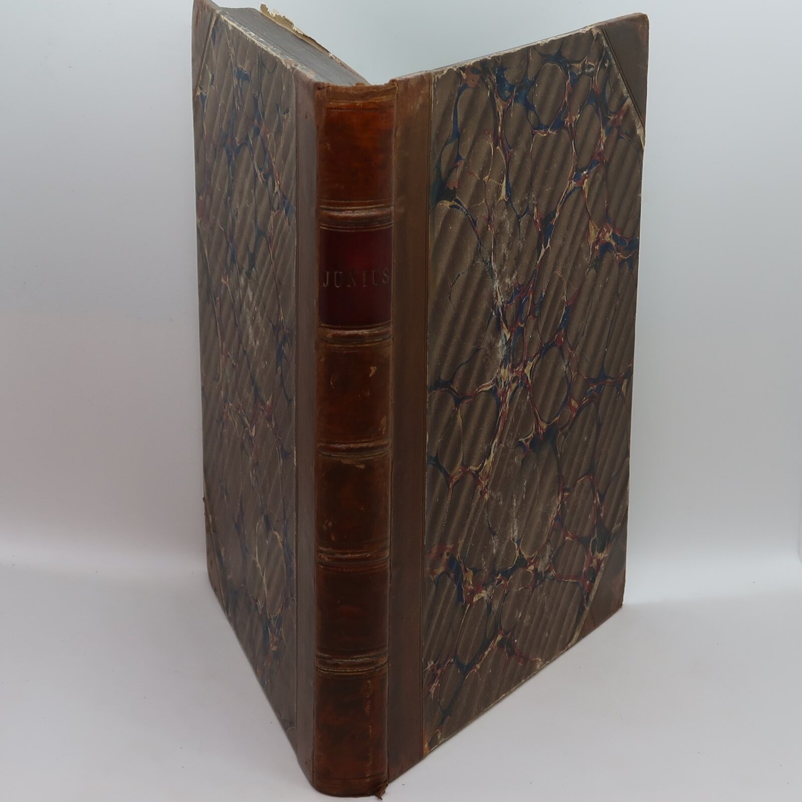 The original collected edition of the letters, which were first published in the London PUBLIC ADVERTISER from Jan. 21, 1769 to Jan. 21, 1772 under the pseudonym of “Junius” (possibly Sir Philip Francis). “.’Junius’ poured brilliantly slanderous invective upon Tory-minded English ministers, especially the Duke of Grafton, for a series of ‘inconsistent measures’ which allegedly ruined England and drove the colonies ‘into excesses little short of rebellion.’ Vehement, lucid, frequently reprinted in English and colonial newspapers, the letters were polemical masterpieces with such extraordinary knowledge and appreciation of contemporary colonial opinion that they lent moral support to the early revolutionary cause. ‘Junius’ opposed the Tea Duty, but upheld the legality of the Stamp Act, and prophesied (Dec. 19, 1769) that the colonies aimed at independence”