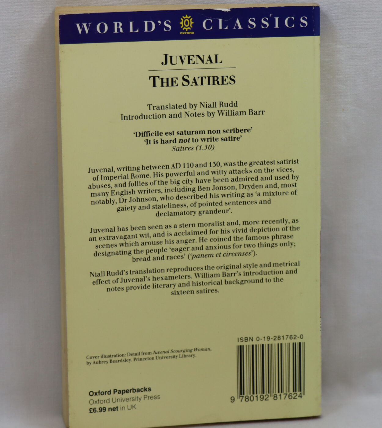 Niall Rudd’s translation reproduces the original style and metrical effect of Juvenal’s hexameters. William Barr’s Introduction and Notes provide literary and historical background to the sixteen satires.
