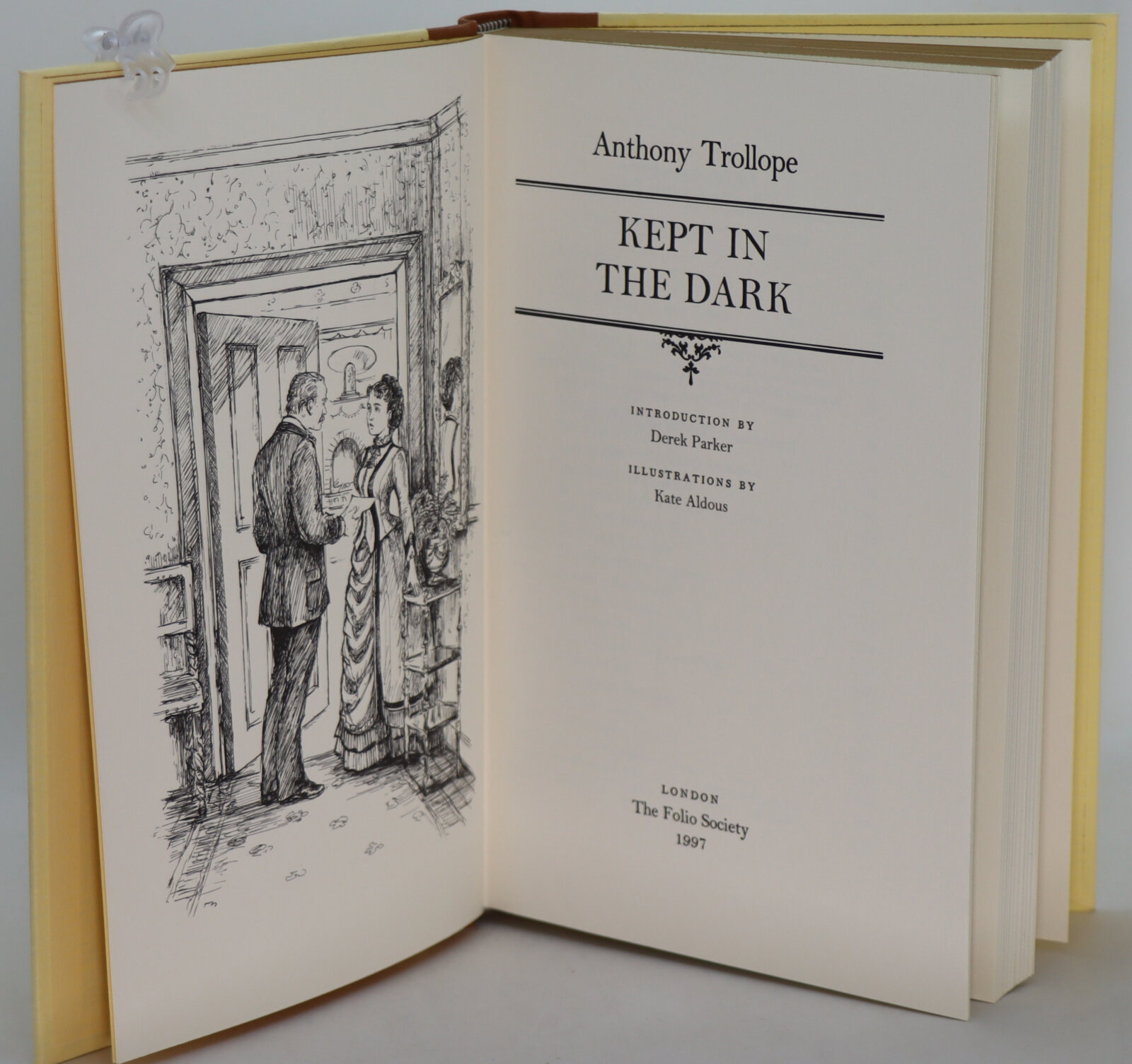 Brown cloth spine with black title plates and gilt lettering. Cream boards with floral edging.