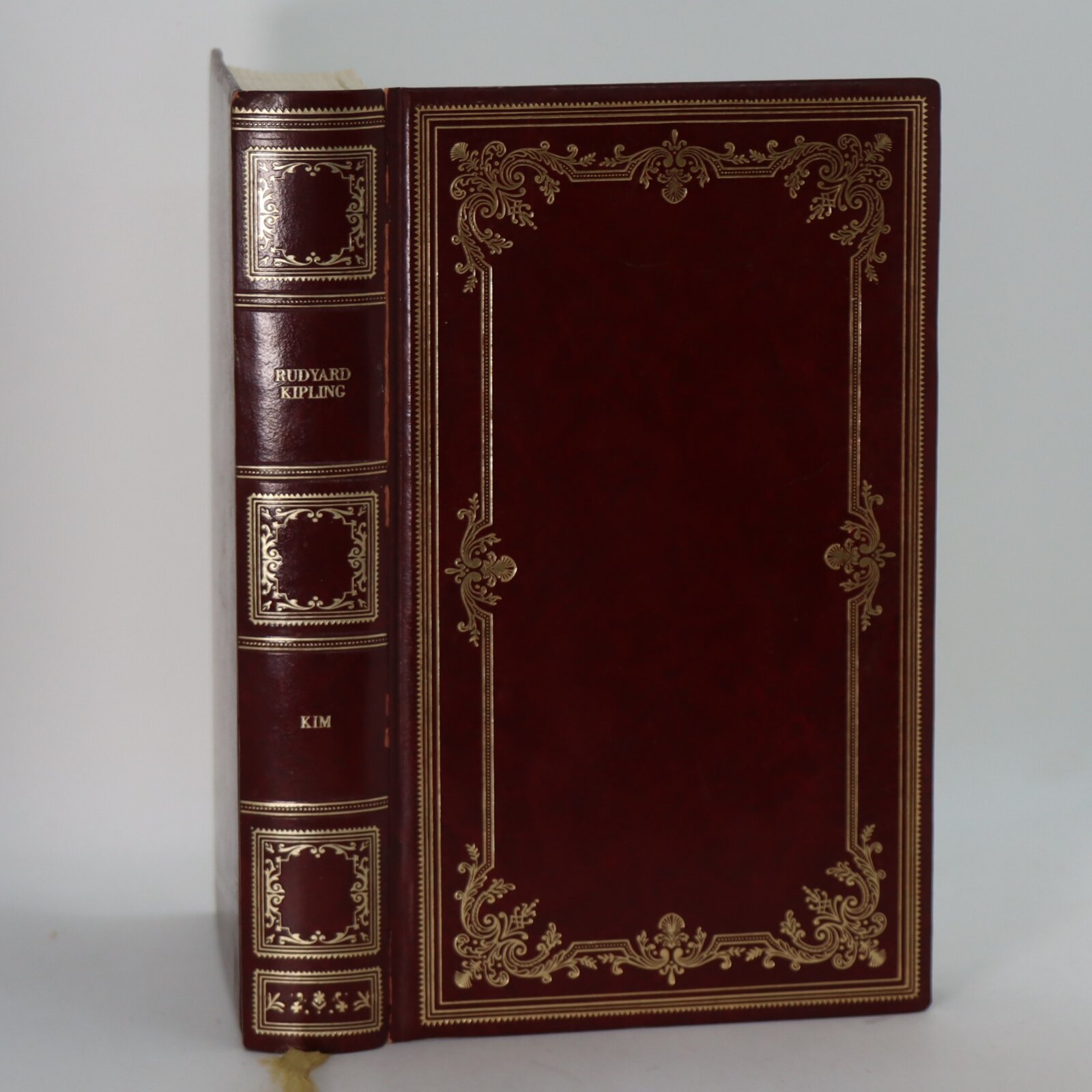 Brown leatherette with gilt title and decoration on the spine. Gilt decoration on the front board.