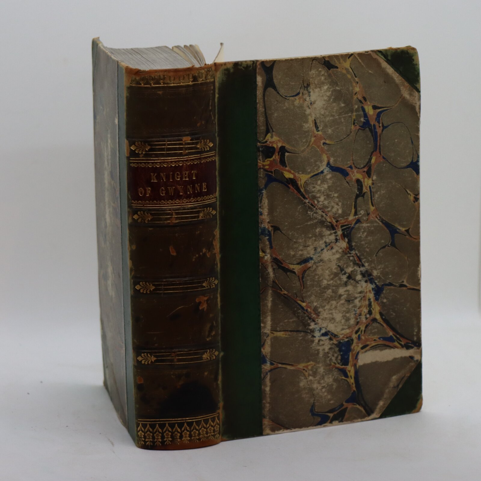 Faded green spine, olive marbled boards. Brow title plate with gilt lettering and banding.
