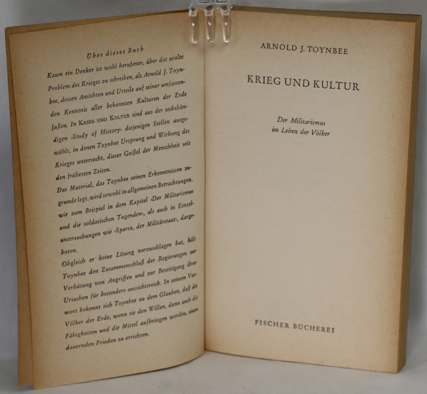 Arnold J. Toynbee. Selected by Albert V. Fowler. Authorized translation from English by Heinrich Mattutat / Fischer Bücherei; 235 1958 163 pp. Please view the photographs for condition.