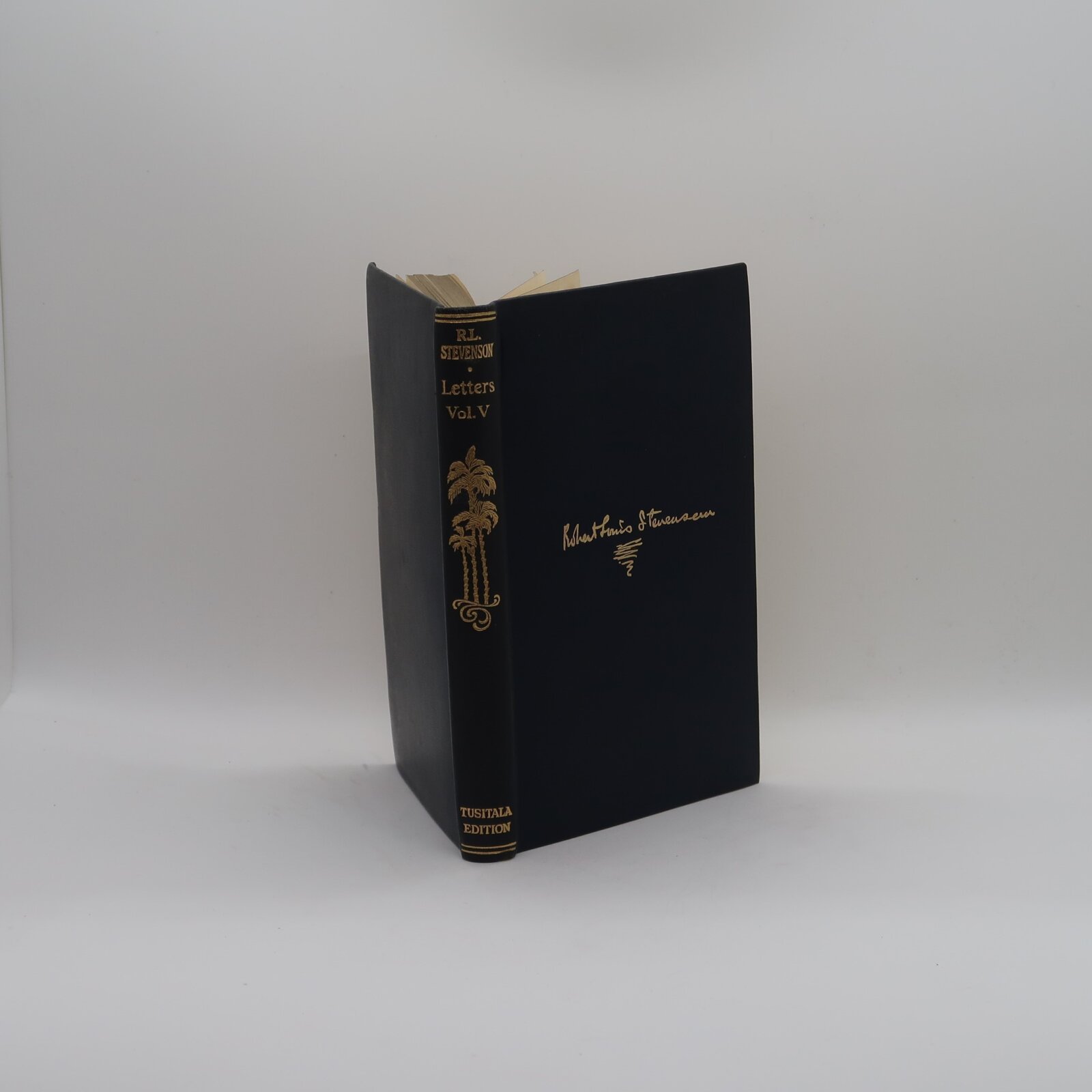 Part of a set. Navy blue calf leatherette binding with gold lettering.