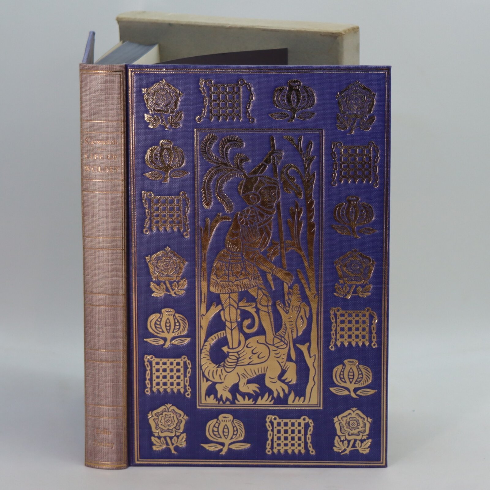 In a fitted box. Purple cloth binding with gilt George and the dragon, portcullis and rose emblems on front board.Gilt banding and title on the slightly faded spine.