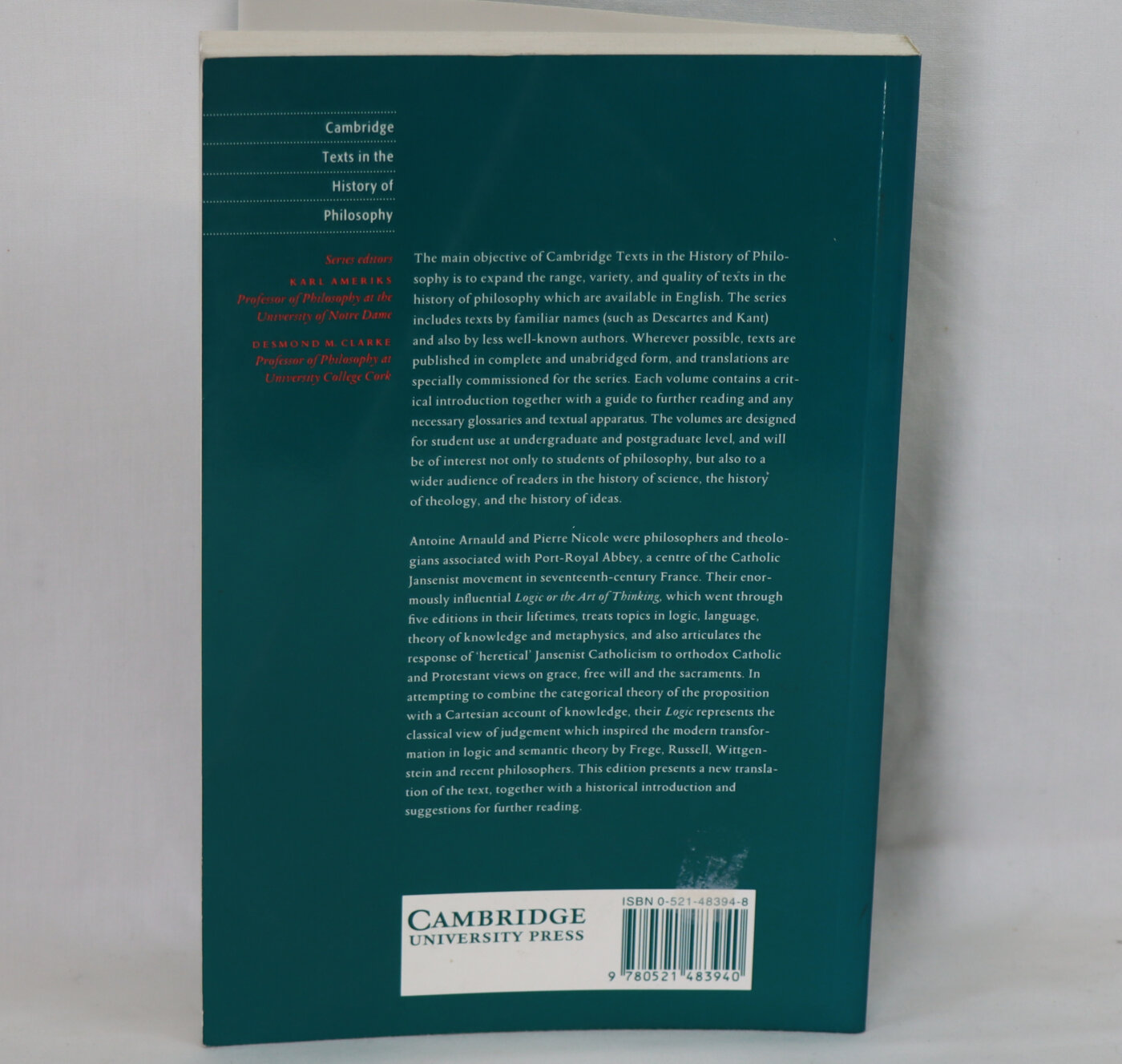 Antoine Arnauld and Pierre Nicole were philosophers and theologians associated with Port-Royal Abbey, a centre of the Catholic Jansenist movement in seventeenth-century France. Their enormously influential Logic or the Art of Thinking, which went through five editions in their lifetimes, treats topics in logic, language, theory of knowledge and metaphysics, and also articulates the response of ‘heretical’ Jansenist Catholicism to orthodox Catholic and Protestant views on grace, free will and the sacraments. In attempting to combine the categorical theory of the proposition with a Cartesian account of knowledge, their Logic represents the classical view of judgment which inspired the modern transformation in logic and semantic theory by Frege, Russell, Wittgenstein and recent philosophers. This edition presents a new translation of the text, together with a historical introduction and suggestions for further reading.