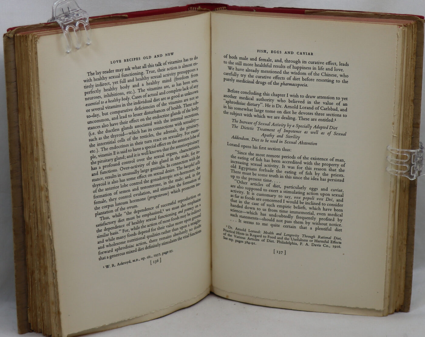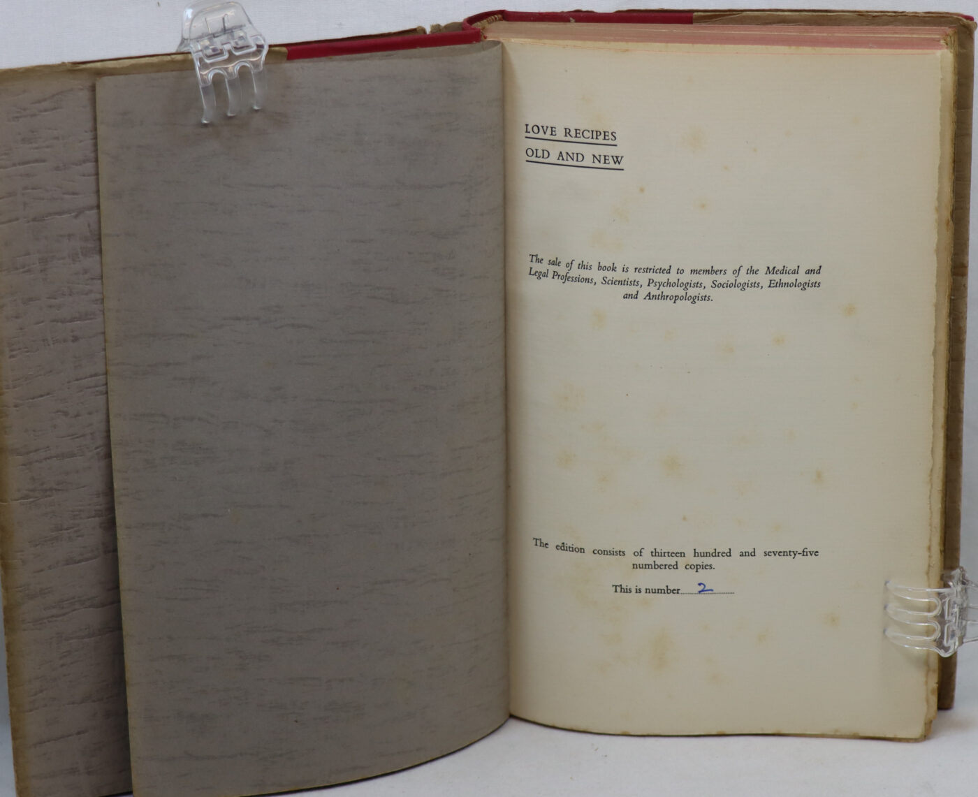 Limited Edition. No 2 of the limited edition of 375. First Printing,  Clean, bright, and handsome, with only the lightest of wear, in a tough, heavy paper dust jacket with paper title label to spine panel, slight darkening to the spine and a little dustiness here and there. A very good copy indeed. Internally clean, edges untrimmed, a notably luxurious piece of book production. A scholarly insight into the long history, theory, and practical applications of aphrodisiac food and drink around the world citing a multitude of sources from the ancient Greeks through to 19th century Europe, via Persia, China, and India. With an in depth bibliographical section, and a number of recipes and nutritional guidelines for those wishing to make the most of an aphrodisiac diet.