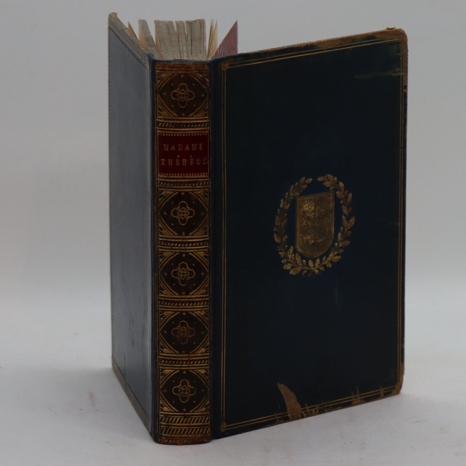 Full navy calf. Gilt edging to both boards with Emblem on the front board. Red title plate with gilt lettering and ornate decoration on the spine.