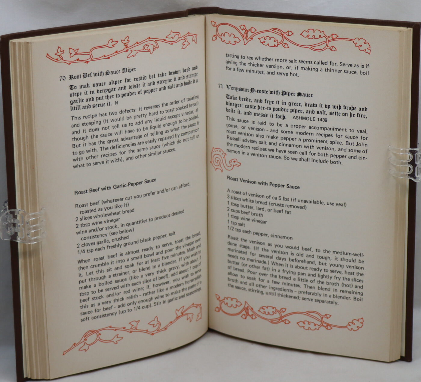 A classic cookbook that makes genuine medieval meals available to modern cooks.nThe approach to cooking is entirely practical. The emphasis of the book is on making medieval cookery accessible by enabling today’s cooks to produce authentic medieval dishes with as much fidelity as possible. All the ingredients are readily available; where some might prove difficult to find, suitable substitutes are suggested. While modern ingredients which did not exist in the Middle Ages have been excluded (corn starch, for example), modern time and energy saving appliances have not. Authenticity of composition, taste, and appearance are the book’s main concerns.