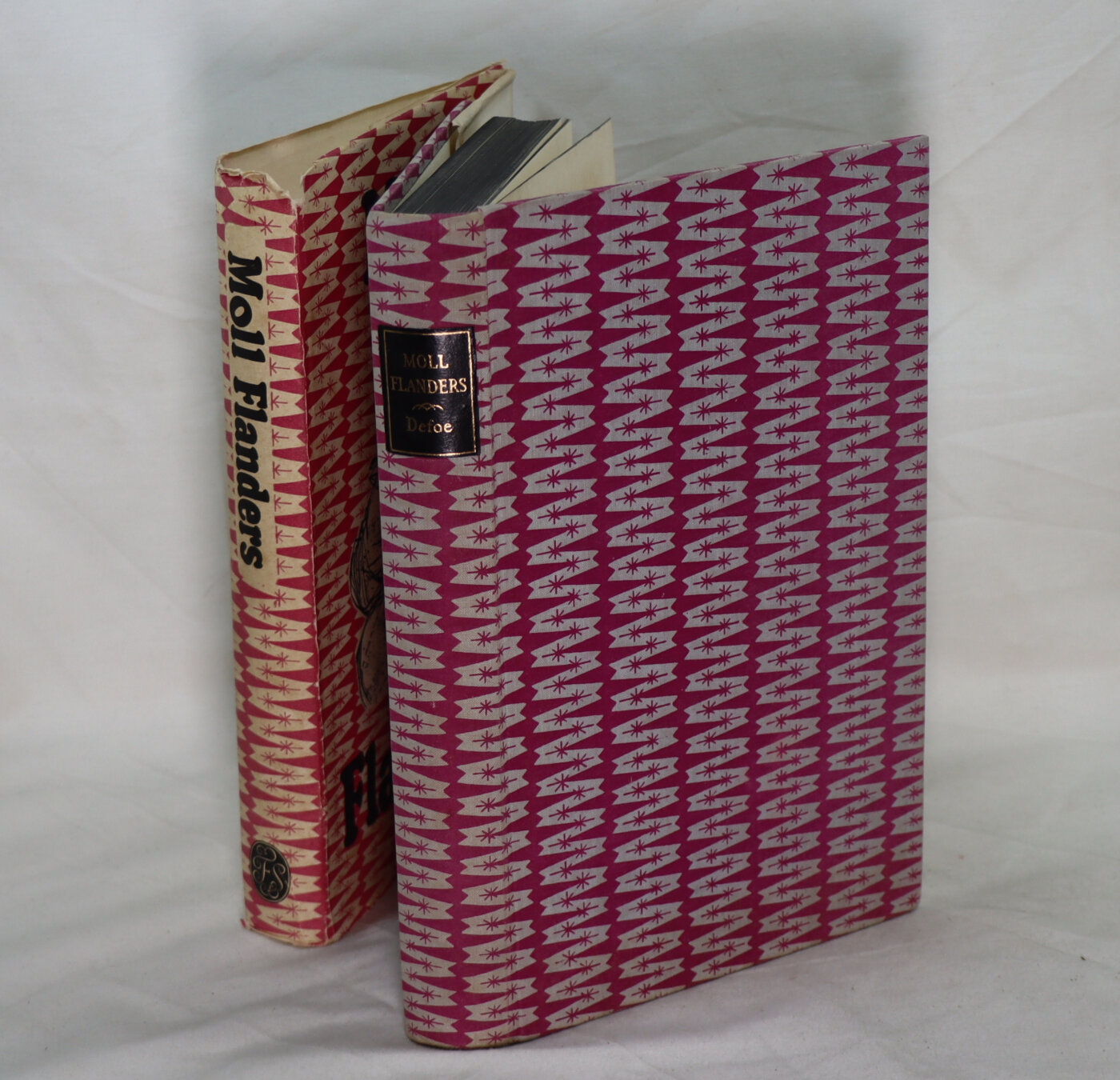 Fully titled, The Fortunes & Misfortunes Of The Famous Moll Flanders, Who Was Born In Newgate, And During A Life Of Continu’d Variety For Threescore Years, Besides Her Childhood, Was Twelve Year A Whore, Five Times A Wife (whereof Once To Her Own Brother) , Twelve Year a Thief, Eight Year a Transported Felon in Virginia, At Last Grew Rich, Liv’d Honest, and Died a Penitent. White dust-jacket printed in red & black, jacket address ‘3b Dean’s Yard’.