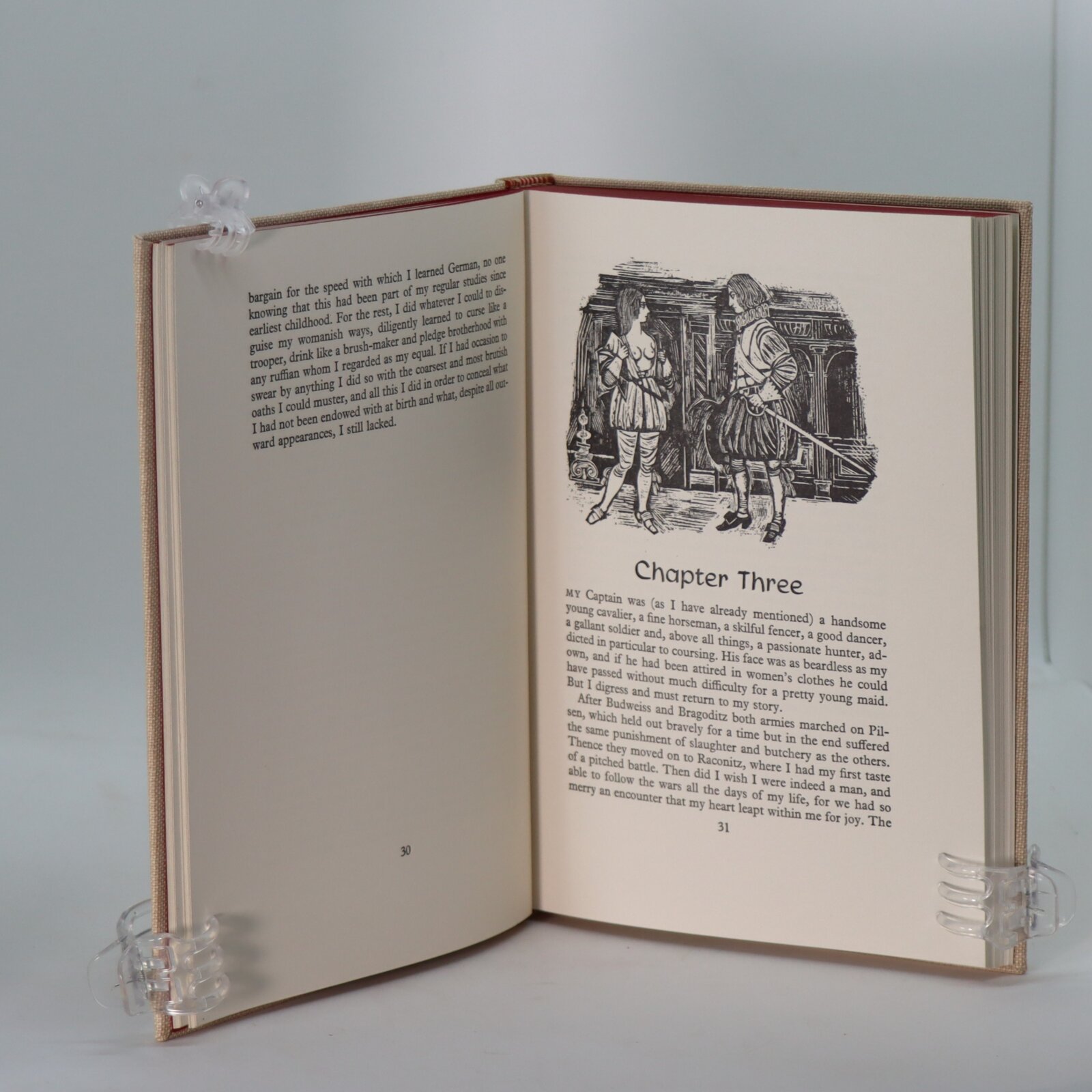 In a fitted box. Cream cloth binding with blue figures marching along bottom edges. Gilt title on the spine.
