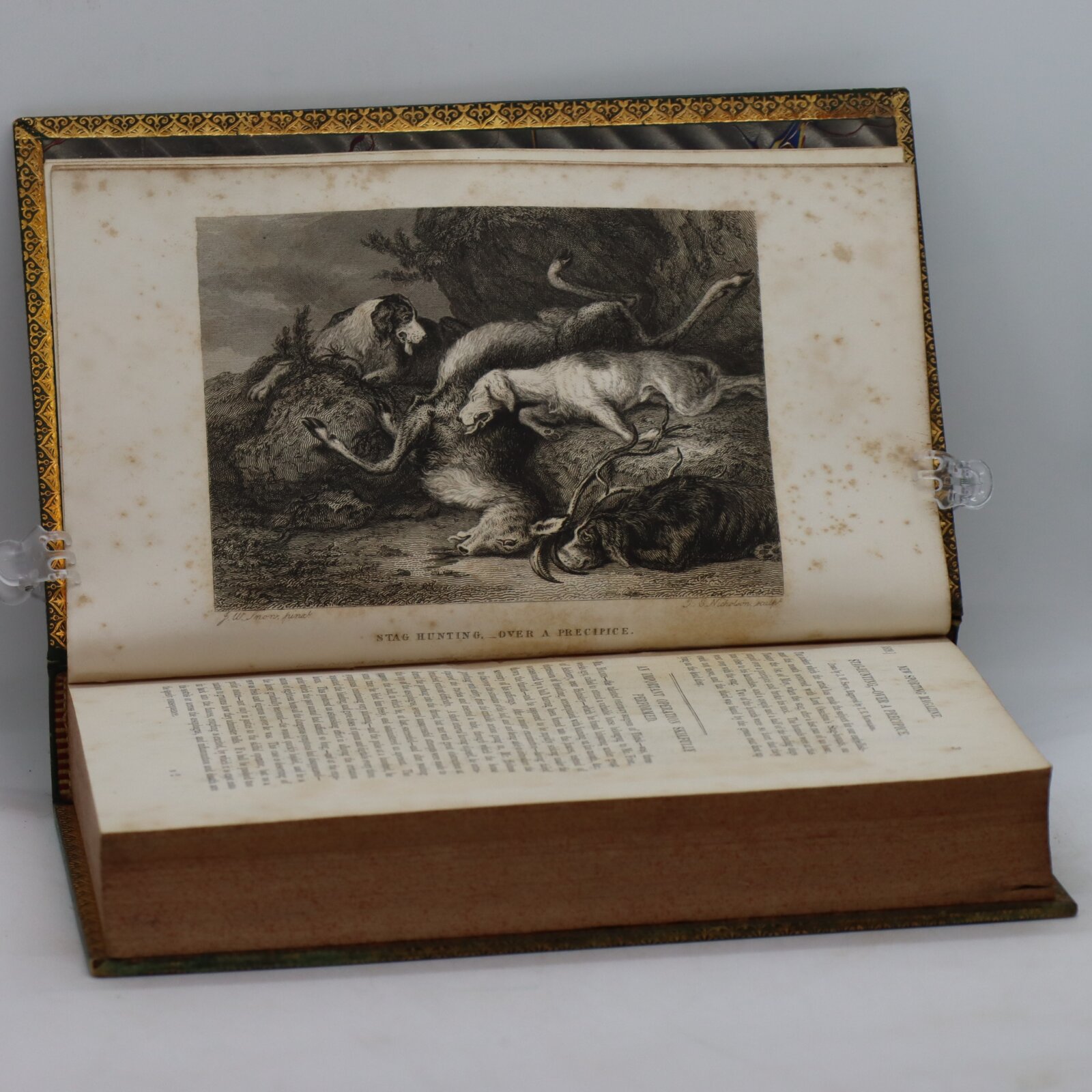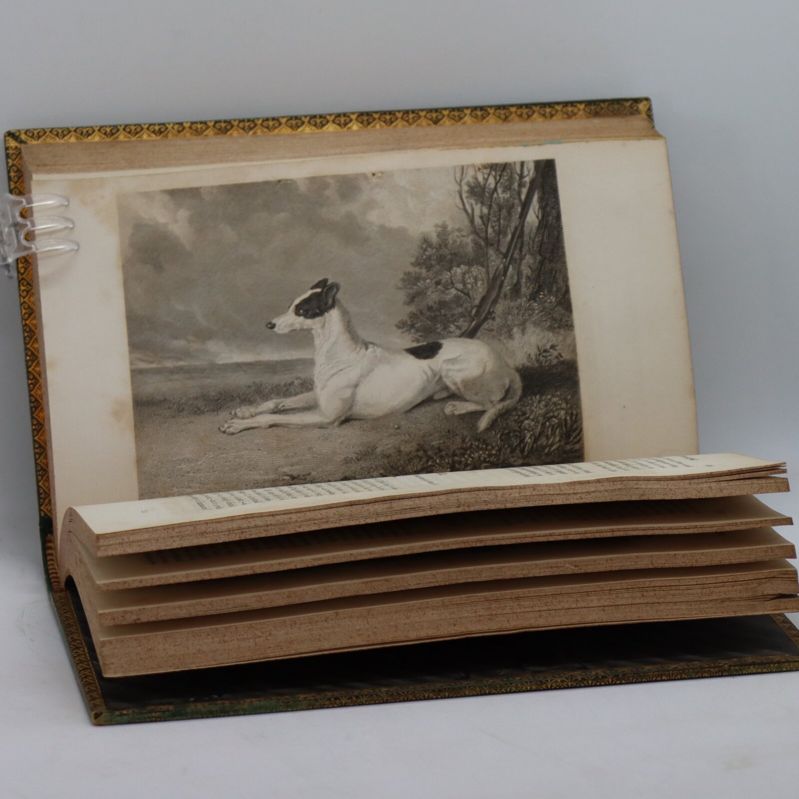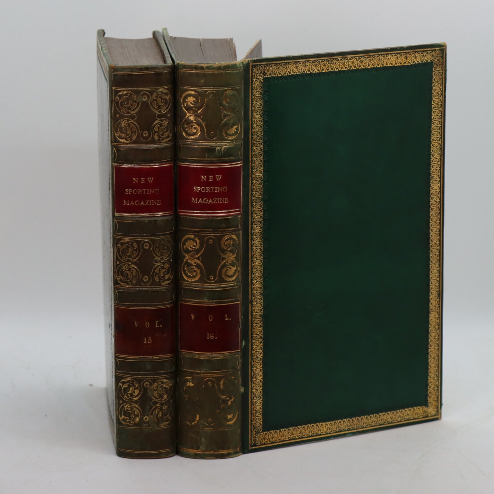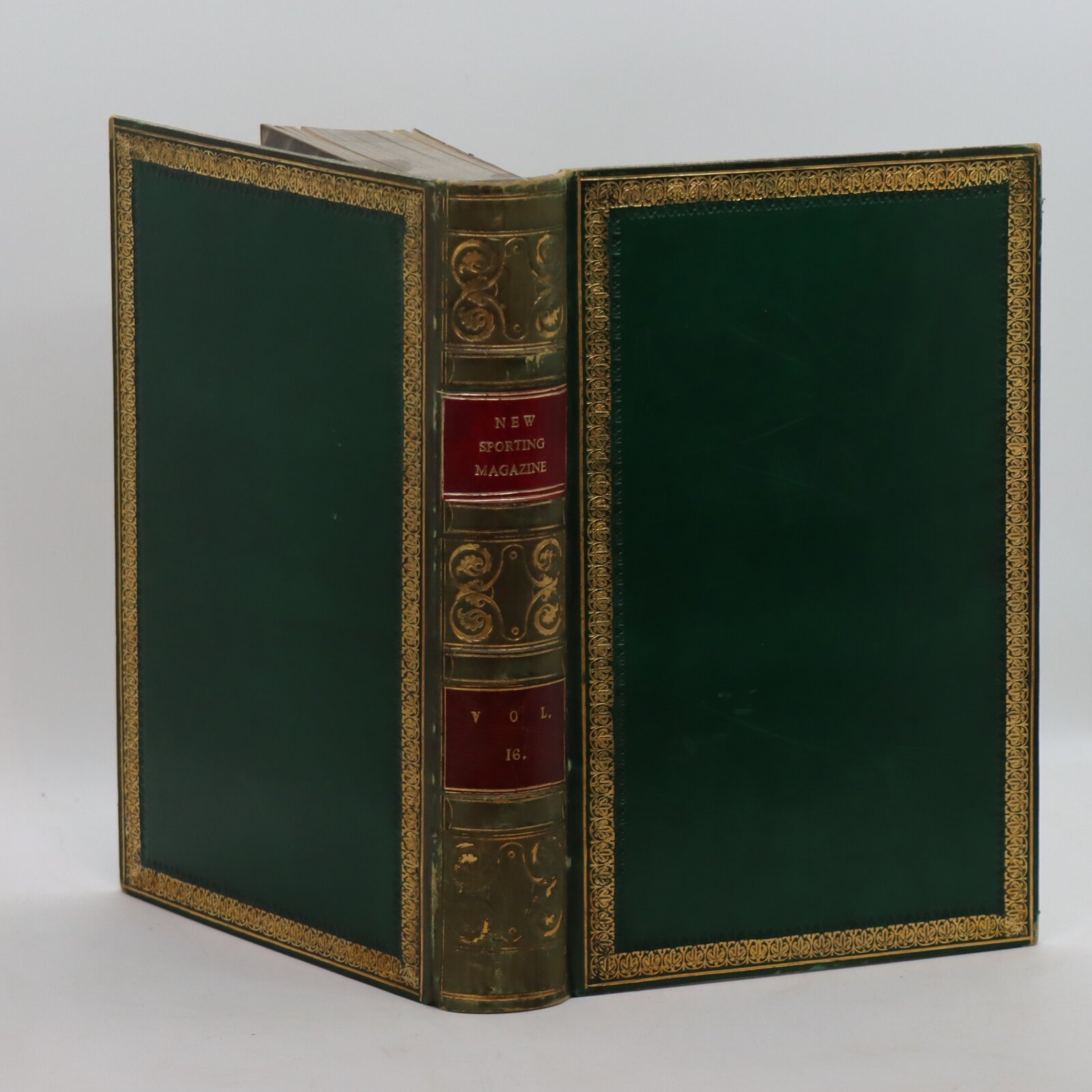 Green leather binding. Gilt edging on both boards. Red title plates with gilt lettering and decoration on the spine.
