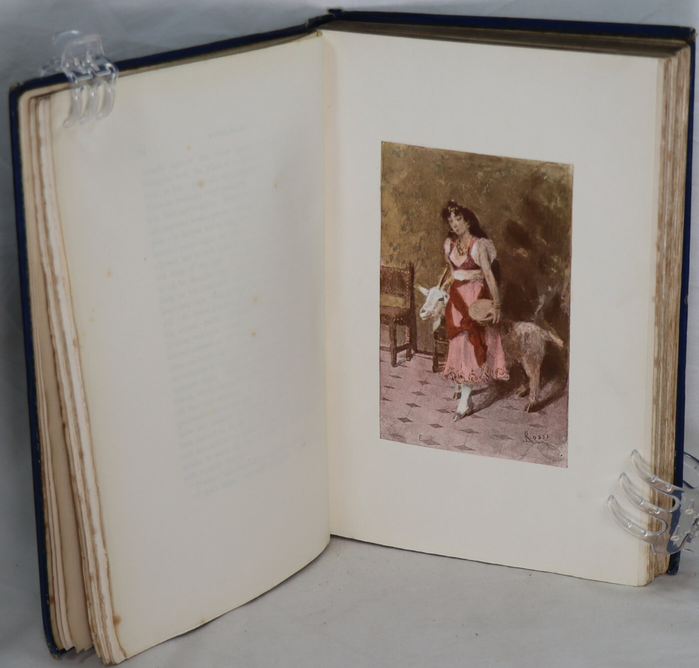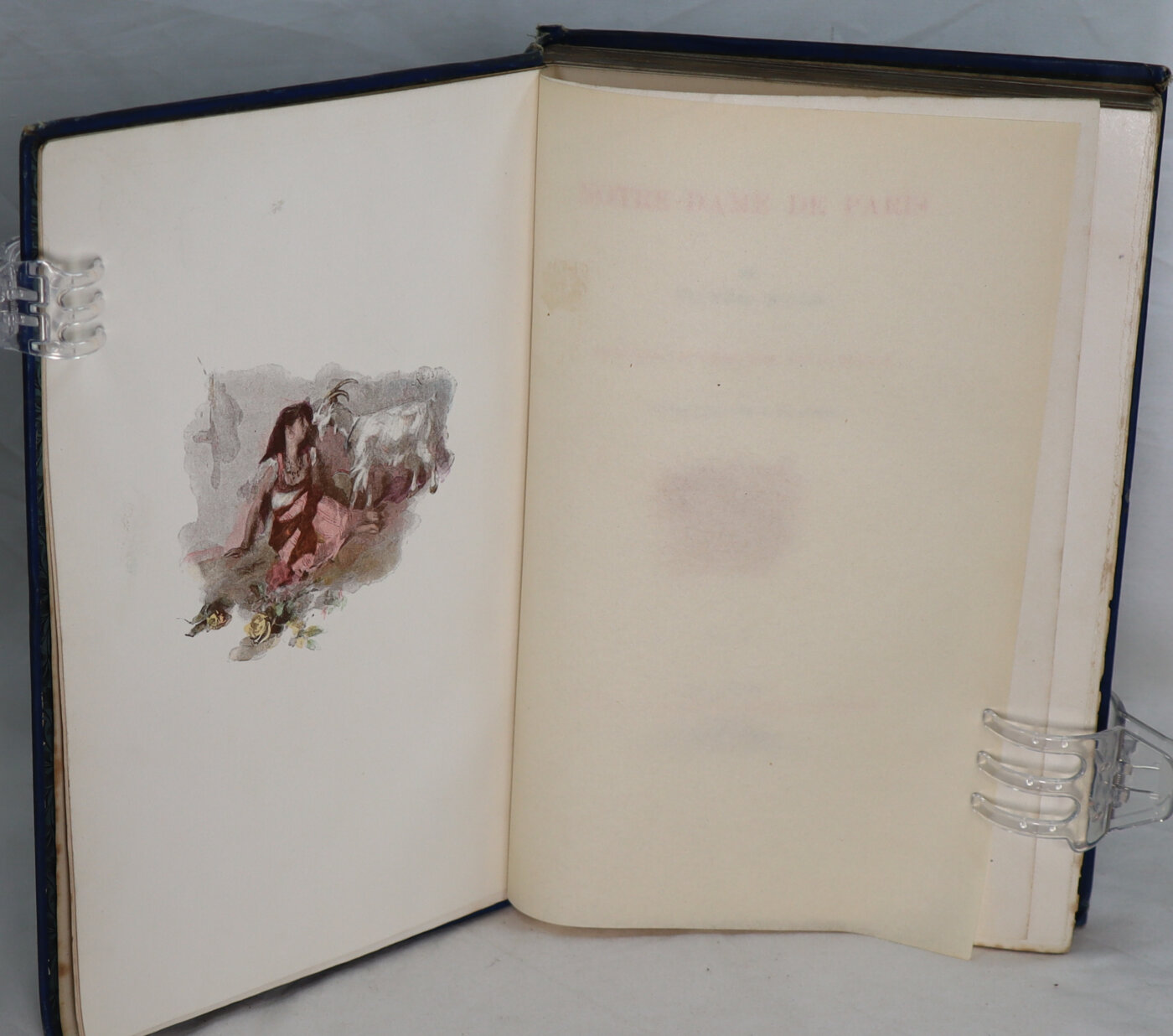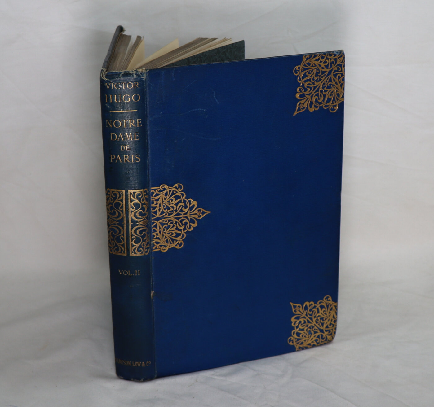 These volumes are limited editions, 179 out of a batch of 775.Both books are in good condition with only a little wear showing on the binding. The interior is fine with many great illustrations. They are English translations of Victor Hugo’s novel ‘The Hunchback of Notre-Dame’ which was published around 1831. Note: The novel’s French title, Notre-Dame de Paris, refers to Notre-Dame Cathedral. Frederic Shoberl’s 1833 English translation was published as The Hunchback of Notre-Dame. This became the generally used title in English, referring to Quasimodo, Notre-Dame’s bell-ringer. Victor Hugo initially agreed to write Notre-Dame de Paris in 1828. Due to Hugo’s other literary projects, the novel fell by the wayside until 1830. A primary theme of the novel is that of the value of Gothic architecture, which was neglected and often destroyed to be replaced by new buildings or defaced by replacement of parts of buildings in a newer style. For instance, the medieval stained glass panels of Notre-Dame de Paris had been replaced by white glass to let more light into the church. A few years earlier, Hugo had already published a paper entitled Guerre aux Démolisseurs (War [declared] on the Demolishers) specifically aimed at saving Paris’ medieval architecture. The agreement with his original publisher, Gosselin, was that the book would be finished that same year, but Hugo was constantly delayed due to the demands of other projects. In the summer of 1830, Gosselin demanded that Hugo complete the book by February 1831. Beginning in September 1830, Hugo worked nonstop on the project thereafter.