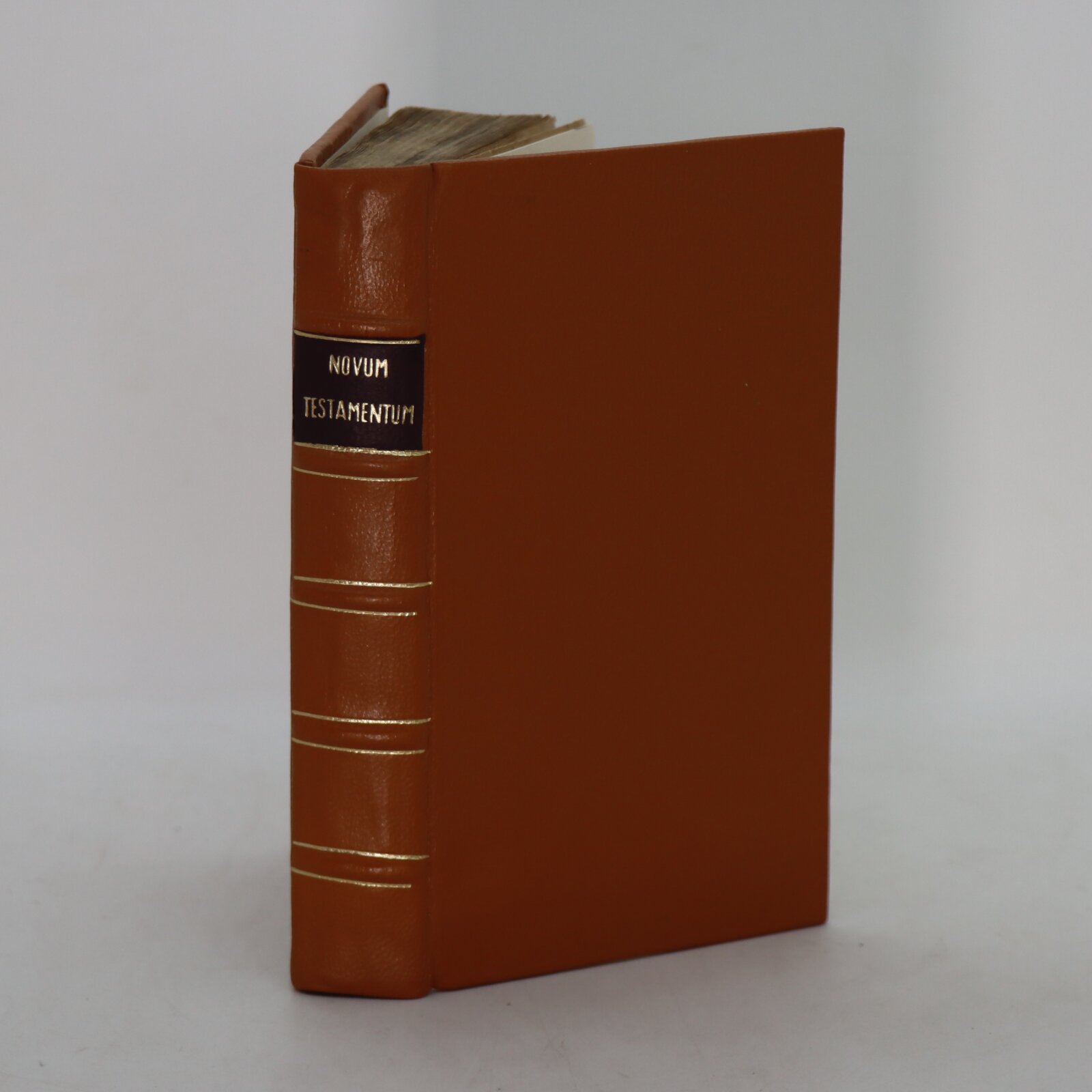 Tan calf binding with brown title plate, gilt title and banding on the spine.