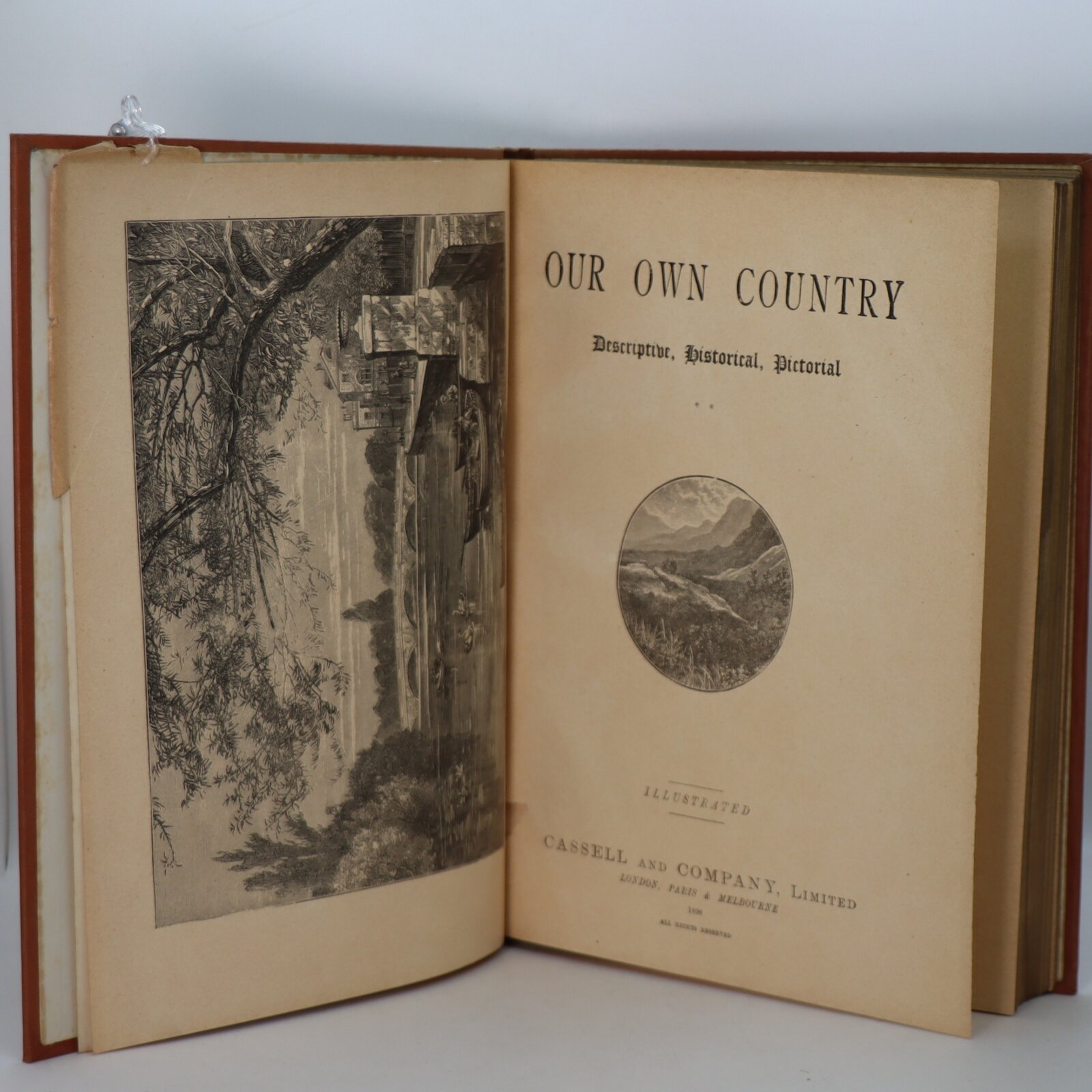 Tan cloth binding with gilt title and green leaves decoration on the spine and on the front board. Dimensions are for one volume.
