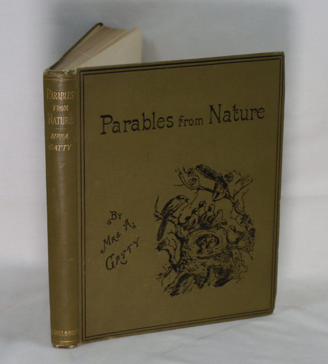 Green cloth binding with gilt title on the spine. Black title and birds nest on the front board.