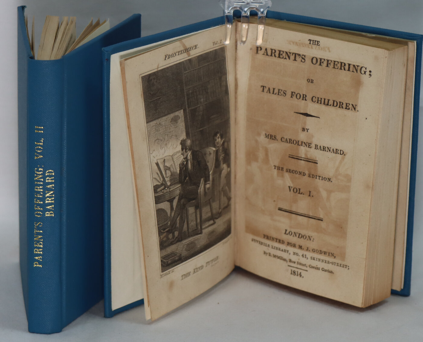The conjecture by Emily Sunstein (Mary Shelley: Romance and Reality p.415) that this work and Barnard’s Parent’s offering (London, 1813) could have been pseudonymous works by Mary Shelley, author of Frankenstein and step- daughter of the publisher, seems unlikely. However, it is nevertheless a great coincidence that Shelley had moved to Buckinghamshire in 1816, and that Claire Claremont – her step-sister – refers to reading a copy of The Parent’s Offering, in her journal, whilst living with the couple in Pisa during the summer of 1820.