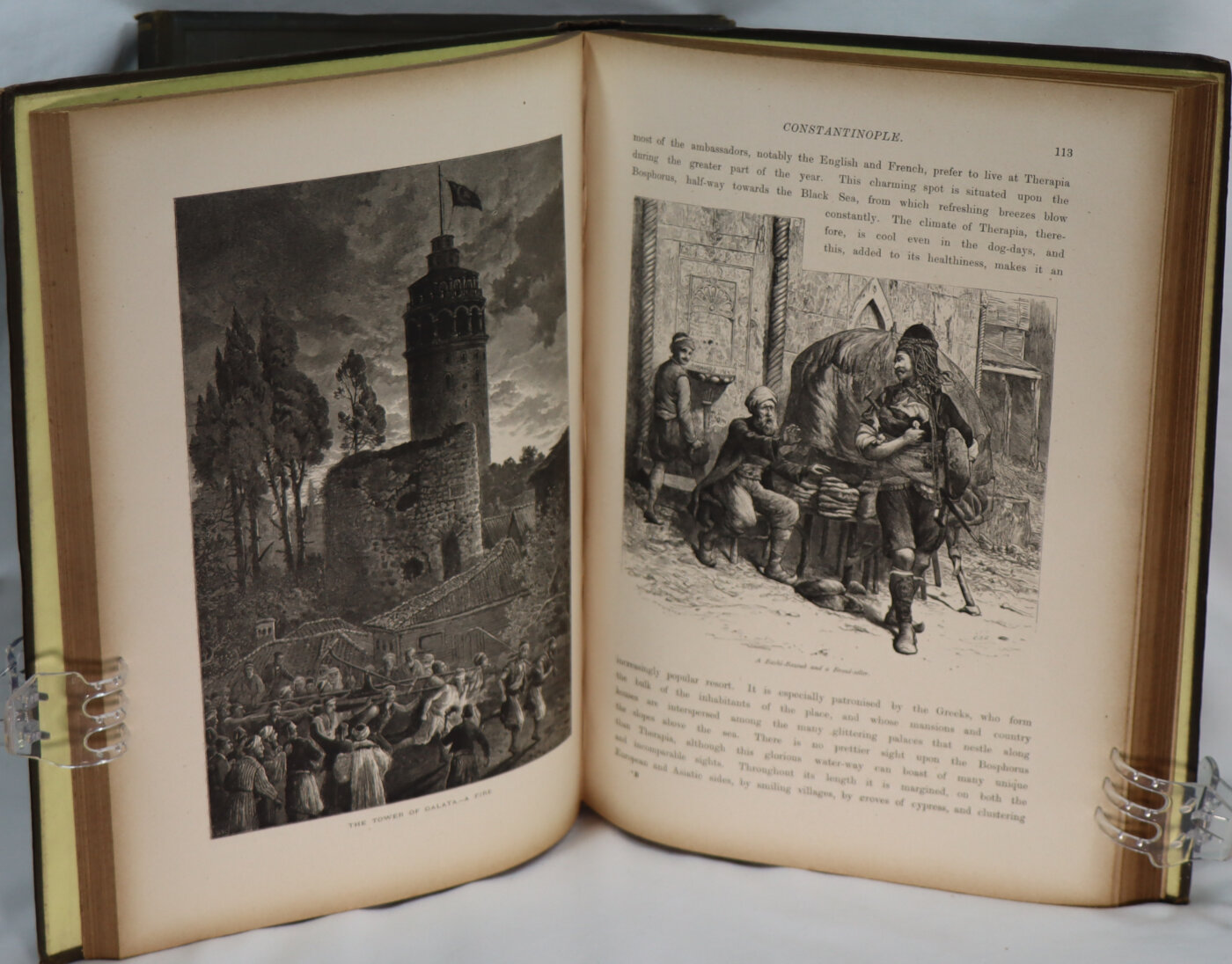 Green cloth binding with gilt title on the spine and front board. Missing volume 2. Dimensions are for one volume.