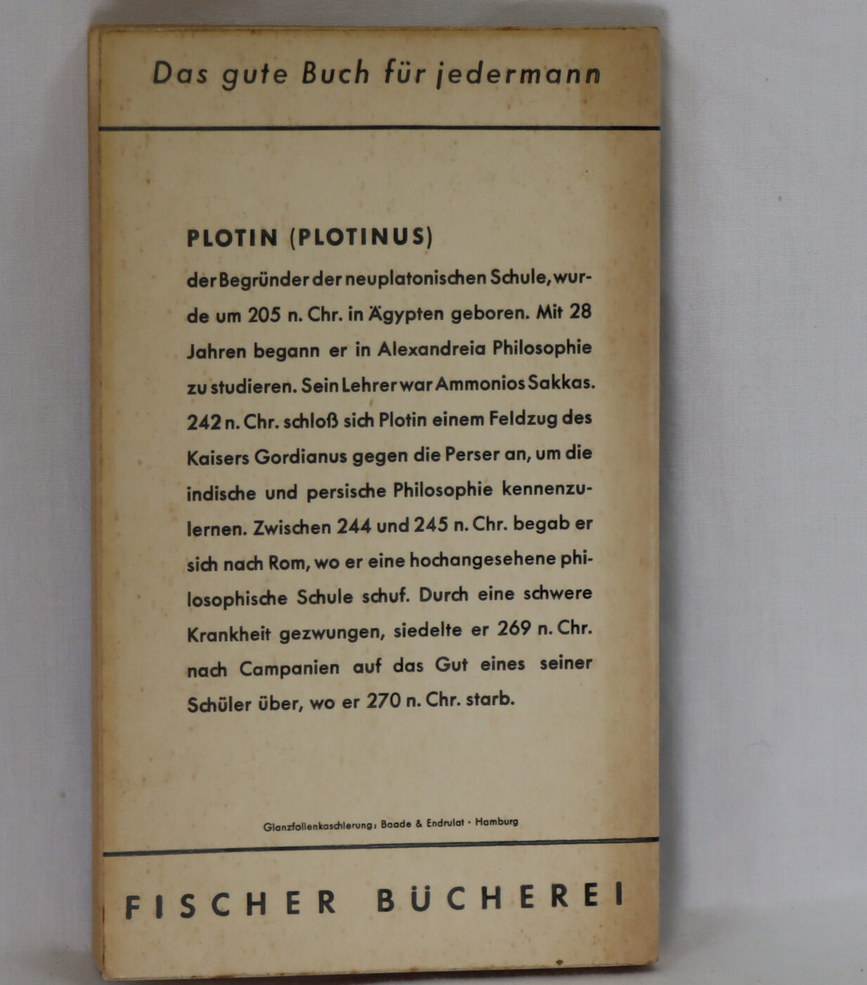 A rare and most interesting paperback providing a German perspective on Plotinus, please view the photographs for the condition of this book.