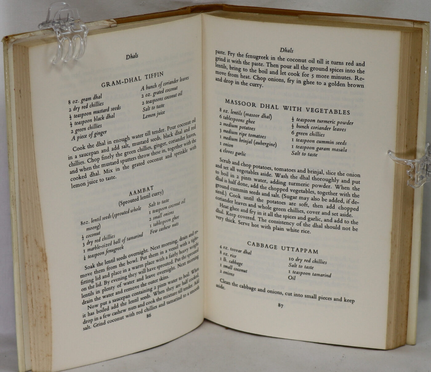 First edition. “Delightful & unusual collection of 300 Indian recipes, rich in vegetarian dishes. Lal’s recipes vary from elaborate and exotic preparations to more everyday dishes and includes a wide variety of vegetable, egg and fish dishes. Each section of the book is prefaced by a vivid description of different Indian legends and festivals that are related to that particular type of food.”–Dust Jacket. Illustrated by Mario Miranda. Index. Light orange cloth with maroon titling and decoration on the spine. Dust Jacket shows very mild wear, with light edge wear, mild sunning to rear. The interior is clean, crisp, tight & bright, unmarked. 264 pp. Approx. 5.75″ x 8.75″. A very attractive copy.