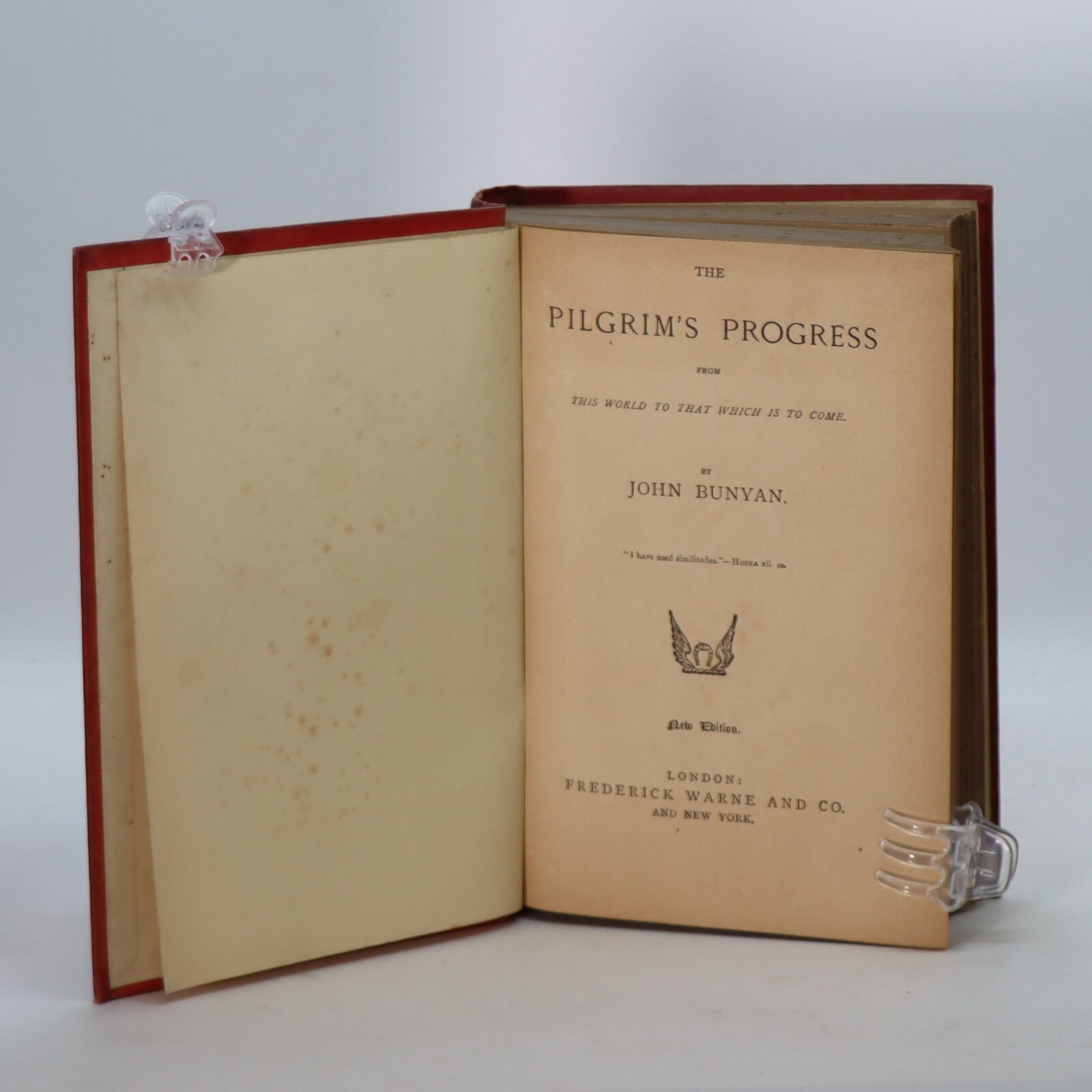 Red cloth binding with black title and floral decoration. Gilt title on the spine.
