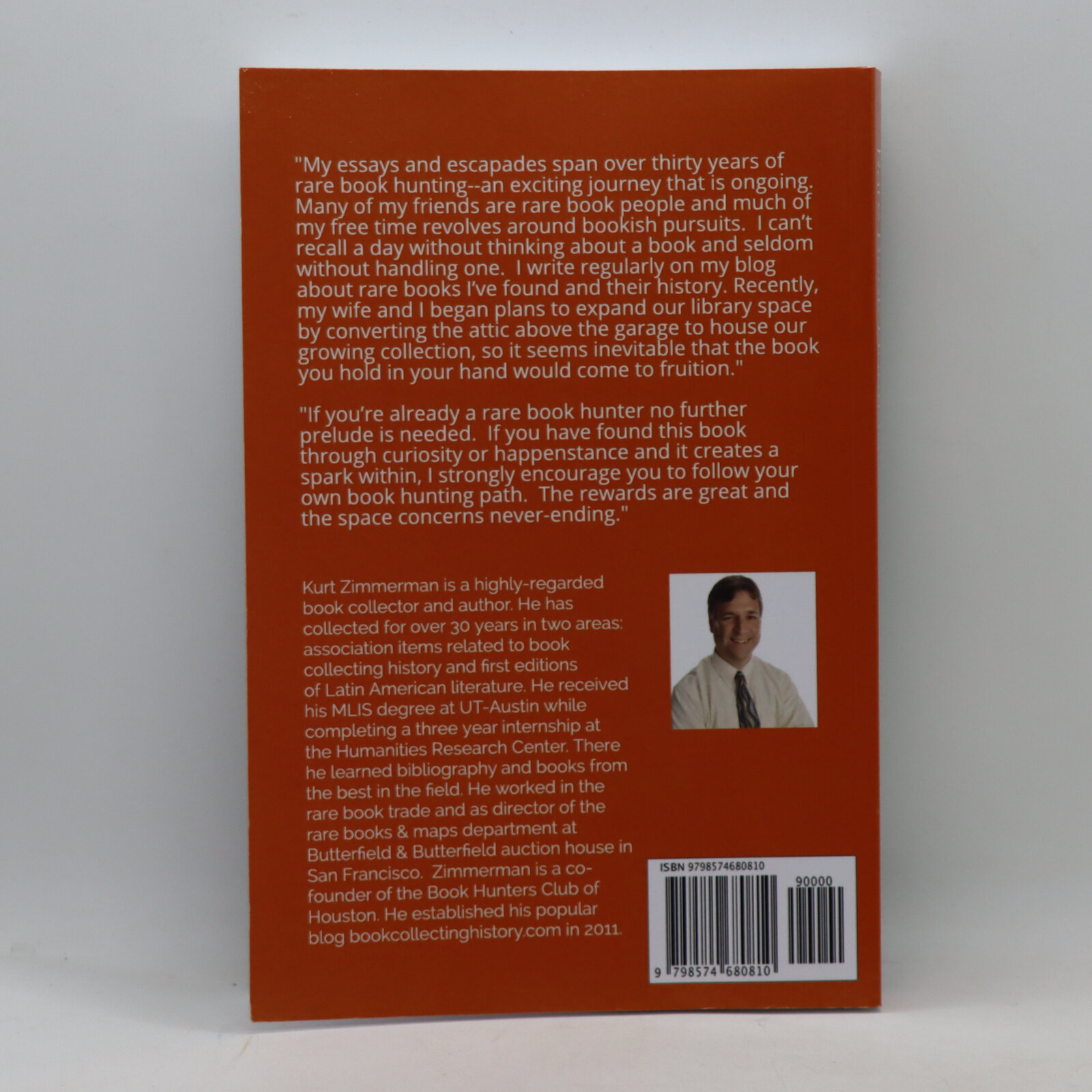 is needed. If you have found this book through curiosity or happenstance, and it creates a spark within, I strongly encourage you to follow your own book hunting path. The rewards are great and the space concerns never-ending. Kurt Zimmerman is a highly regarded book collector and author. He has been collecting for over thirty years in two areas: association items related to book collecting history (currently 7,000+ items) and first editions of Latin American literature (over 2,000 items). He received his Master’s in Library and Information Science degree from UT-Austin while completing a three year