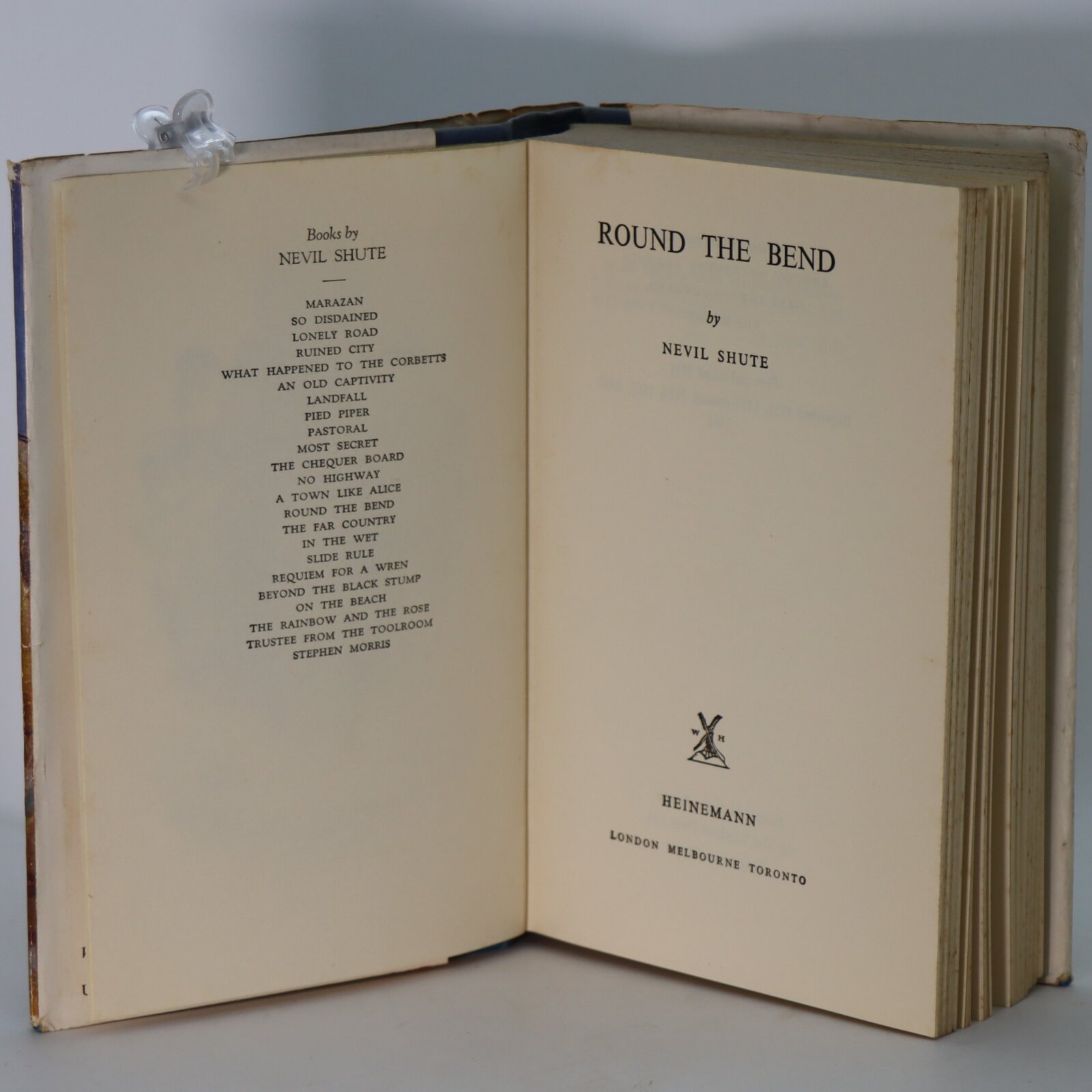 Round the Bend is a 1951 novel by Nevil Shute. It tells the story of Constantine , Connie & Shaklin, an aircraft engineer who founds a new religion transcending existing religions based on the merit of good work. It deals with racism, including the White Australia policy, and also with the importance of private enterprise. It was one of the first novels Shute wrote after emigrating from Britain to Australia in 1950. Nevil Shute Norway (17 January 1899 – 12 January 1960) was an English