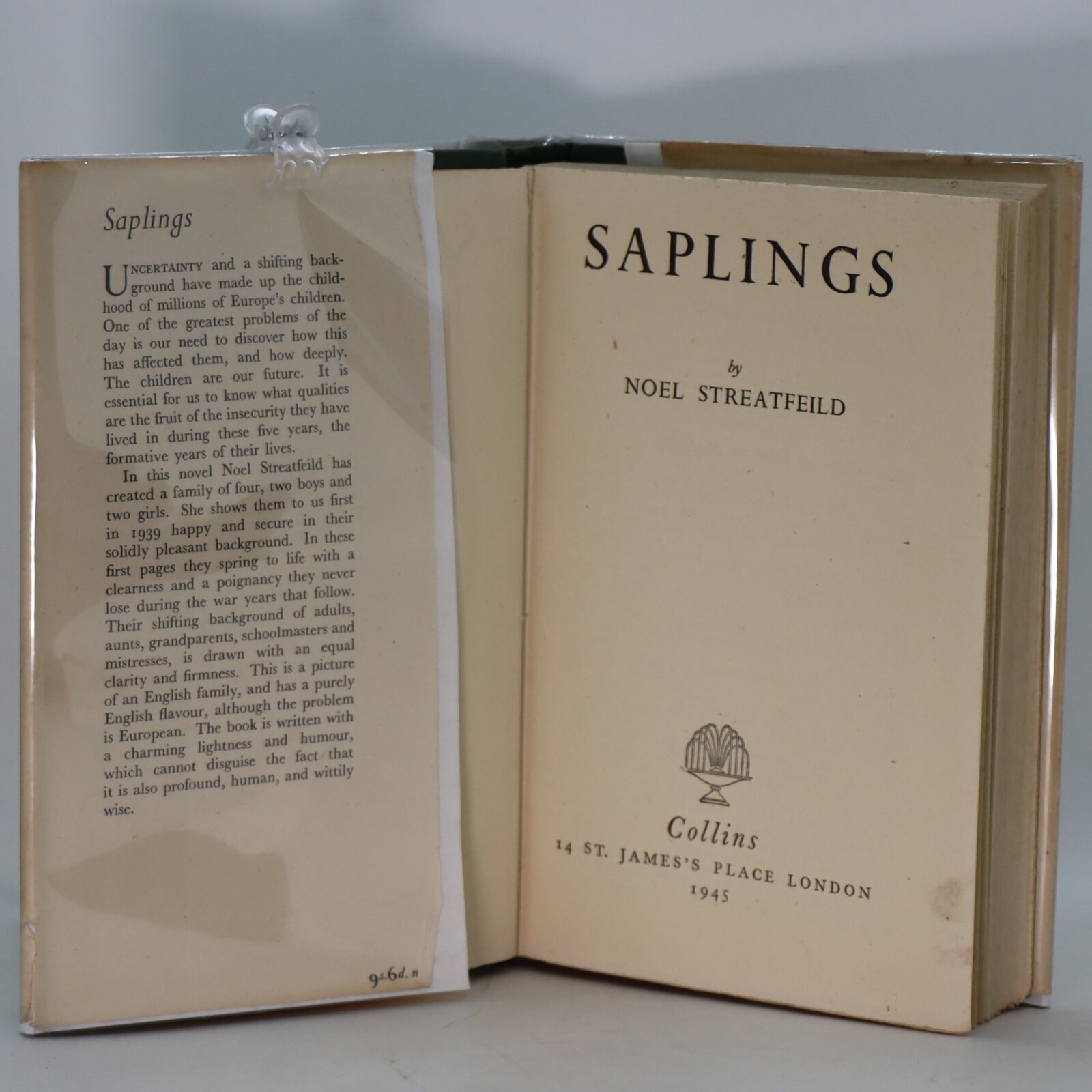 In the original dustsheet. Green cloth binding with pink title on the spine.