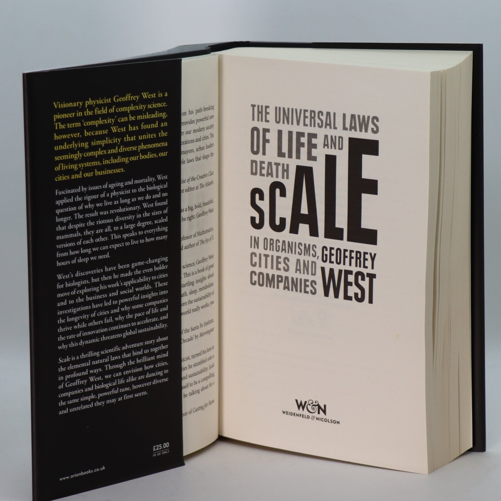 “This is science writing as wonder and as inspiration.” —The Wall Street Journal Wall Street Journal From one of the most influential scientists of our time, a dazzling exploration of the hidden laws that govern the life cycle of everything from plants and animals to the cities we live in. Visionary physicist Geoffrey West is a pioneer in the field of complexity science, the science of emergent systems and networks. The term “complexity” can be misleading, however, because what makes West’s discoveries so beautiful is that he has found an underlying simplicity that unites the seemingly complex and diverse phenomena of living systems, including our bodies, our cities and our businesses. Fascinated by aging and mortality, West applied the rigor of a physicist to the biological question of why we live as long as we do and no longer. The result was astonishing, and changed science: West found that despite the riotous diversity in mammals, they are all, to a large degree, scaled versions of each other. If you know the size of a mammal, you can use scaling laws to learn everything from how much food it eats per day, what its heart-rate is, how long it will take to mature, its lifespan, and so on. Furthermore, the efficiency of the mammal’s circulatory systems scales up precisely based on weight: if you compare a mouse, a human and an elephant on a logarithmic graph, you find with every doubling of average weight, a species gets 25% more efficient—and lives 25% longer. Fundamentally, he has proven, the issue has to do with the fractal geometry of the networks that supply energy and remove waste from the organism’s body. West’s work has been game-changing for biologists.