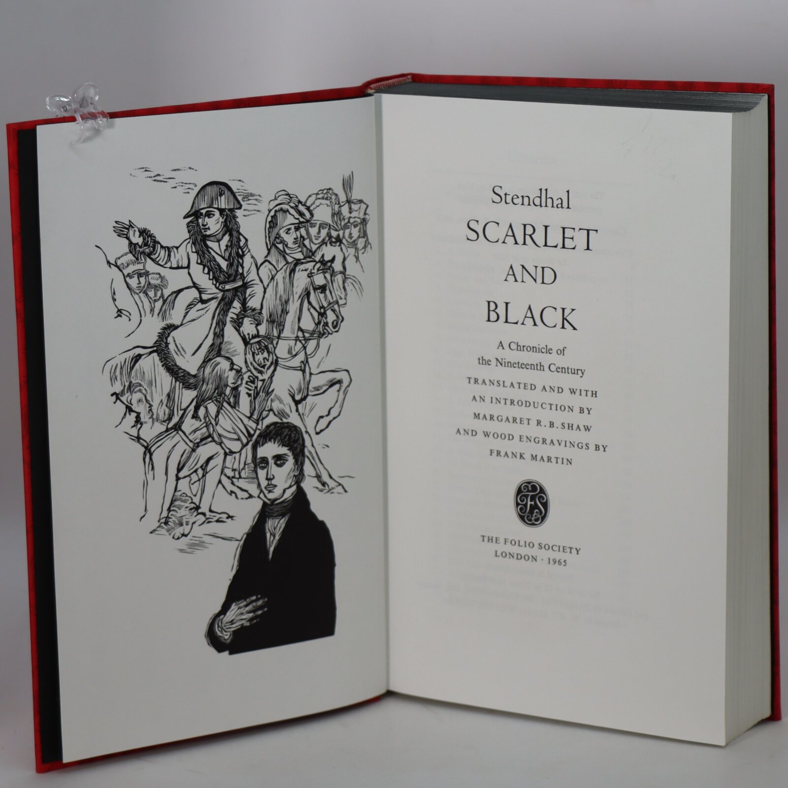 In a fitted box. Red patterned cloth binding with black titleplate and gilt lettering on the spine.