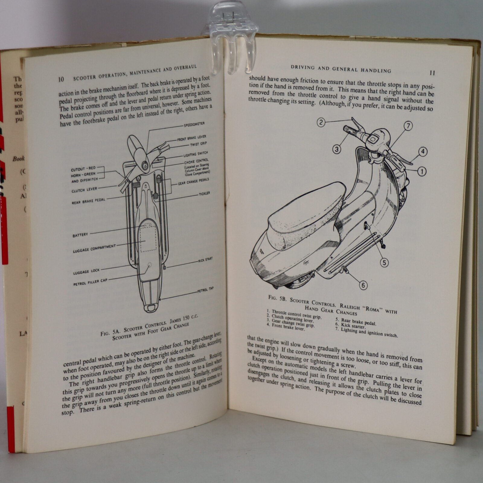 Softback. Red cover with black title and scooter handlebar on the front board.