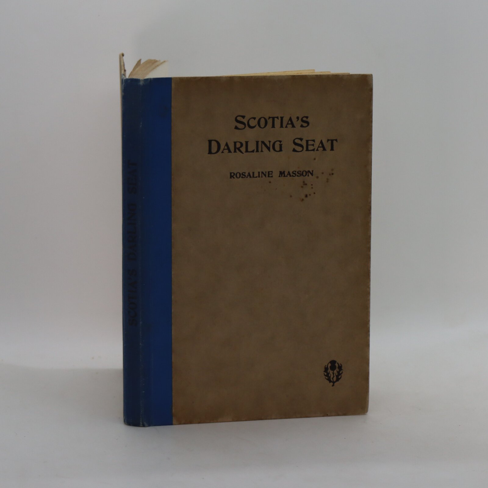 Blue cloth spine with grey boards.