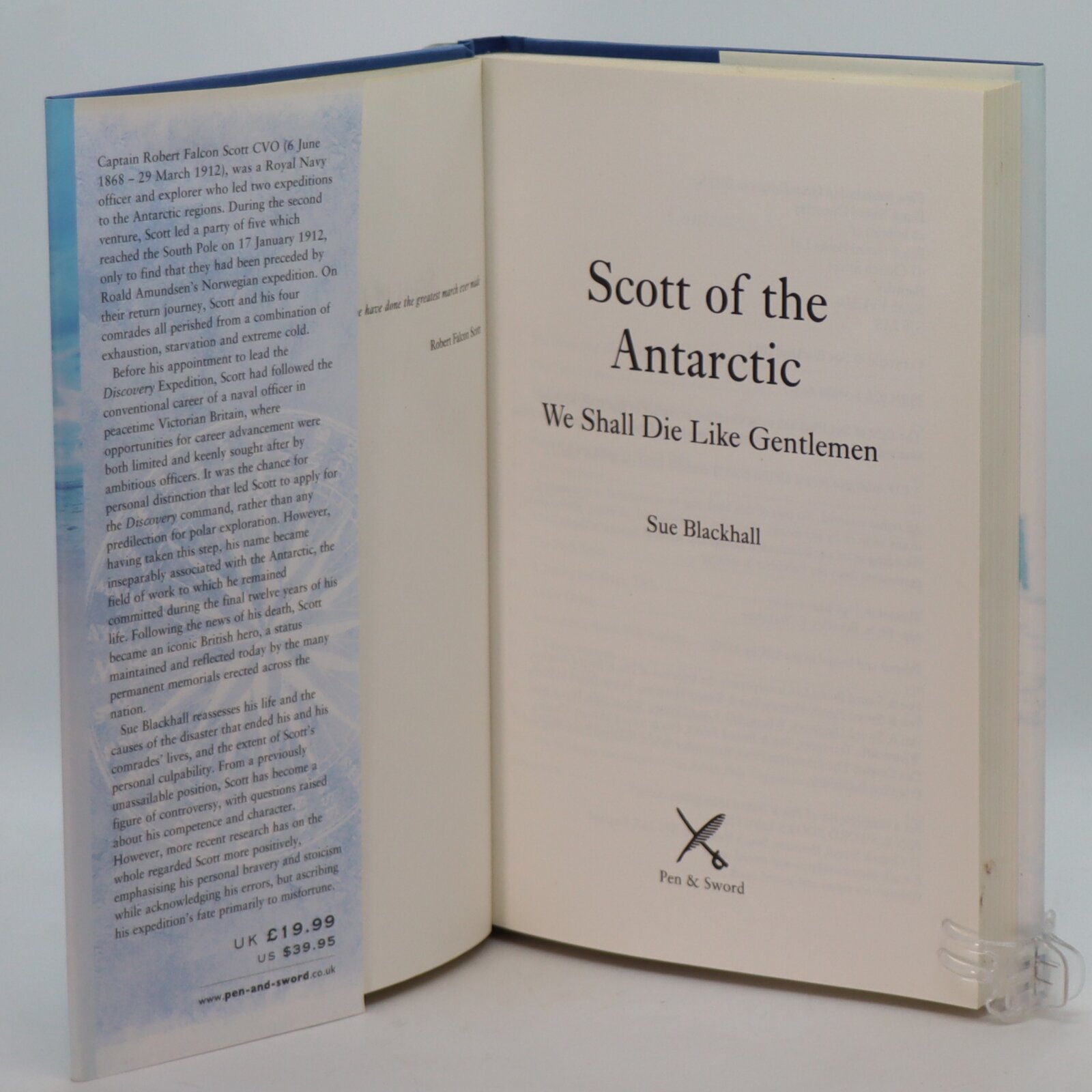 Captain Robert Falcon Scott CVO was a Royal Navy officer and explorer who led two expeditions to the Antarctic regions. During the second venture, Scott led a party of five which reached the South Pole on 17 January 1912, only to find that they had been preceded by Roald Amundsen’s Norwegian expedition. On their return journey, Scott and his four comrades all perished from a combination of exhaustion, starvation and extreme cold. Before his appointment to lead the Discovery Expedition, Scott had followed the conventional career of a naval officer in peacetime Victorian Britain, where opportunities for career advancement were both limited and keenly sought after by ambitious officers. It was the chance for personal distinction that led Scott to apply for the Discovery command, rather than any predilection for polar exploration. However, having taken this step, his name became inseparably associated with the Antarctic, the field of work to which he remained committed during the final twelve years of his life. Following the news of his death, Scott became an iconic British hero, a status maintained and reflected today by the many permanent memorials erected across the nation. Sue Blackhall reassesses his life and the causes of the disaster that ended his and his comrades’ lives, and the extent of Scott’s personal culpability. From a previously unassailable position, Scott has became a figure of controversy, with questions raised about his competence and character. However, more recent research has on the whole regarded Scott more positively, emphasizing his personal bravery and stoicism while acknowledging his errors, but ascribing his expedition’s fate primarily to bad chance.