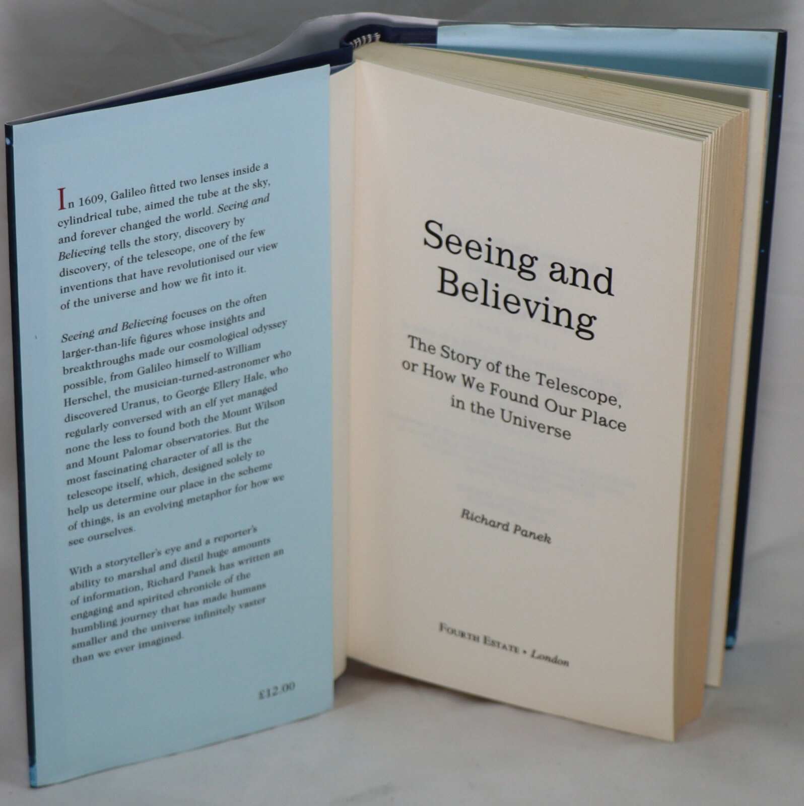 Seeing and Believing tells the story, discovery by discovery, of the telescope, one of the few inventions that have revolutionised our view of the universe and how we fit into it. From Galileo himself to William Herschel who discovered Uranus, to George Ellery Hale who found both Mount Wilson and Mount Palomar observatories. Most fascinating is the character of the telescope itself, which designed solely to help us determine our place in the scheme of things, is an evolving metaphor for how we see ourselves.Richard Panek brings us an engaging and spirited chronicle of the humbling journey that has made humans smaller and the universe infinitely vaster than we ever imagined.