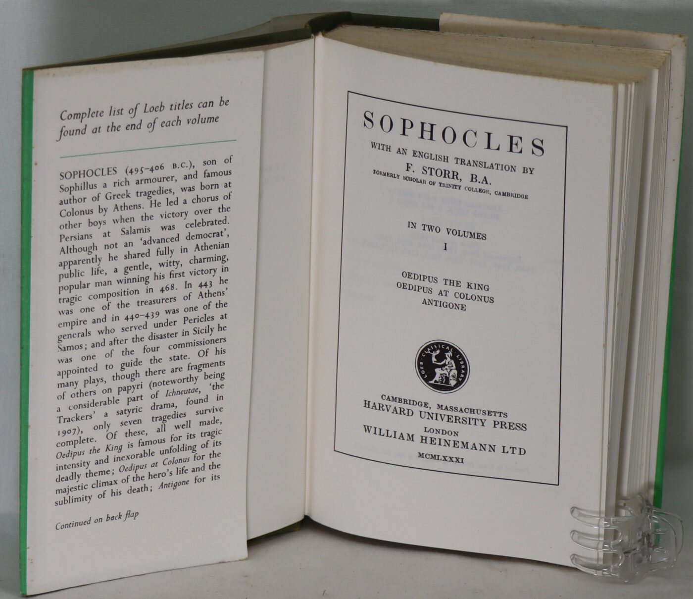 In the original dust cover. Green cloth binding with gilt title on the spine.