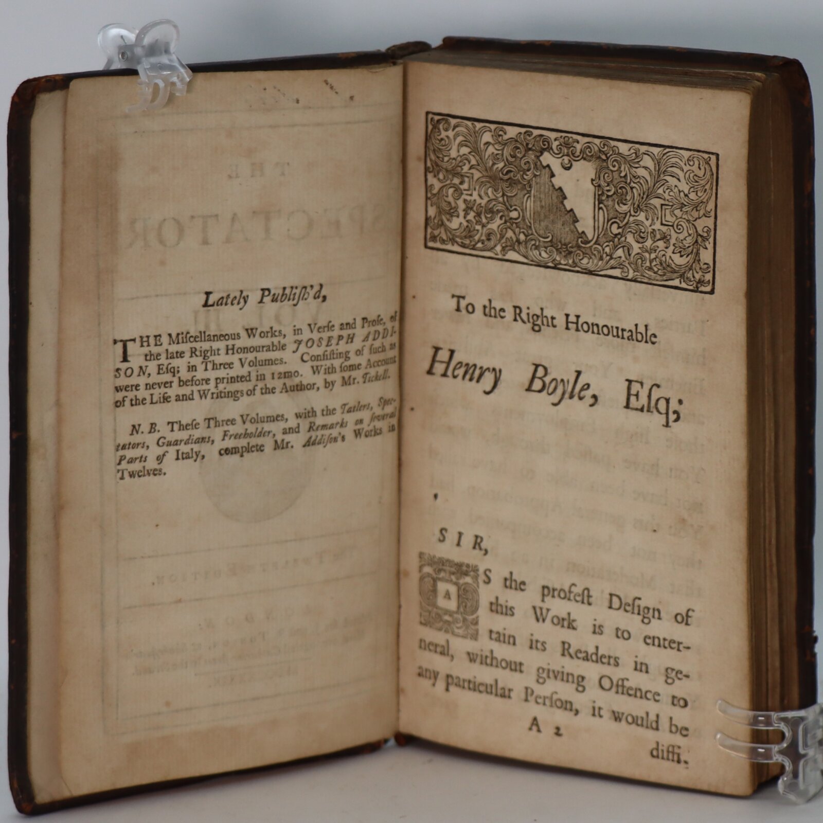 This is a very rare book which consists of daily reprinted editions of the daily publication The Spectator