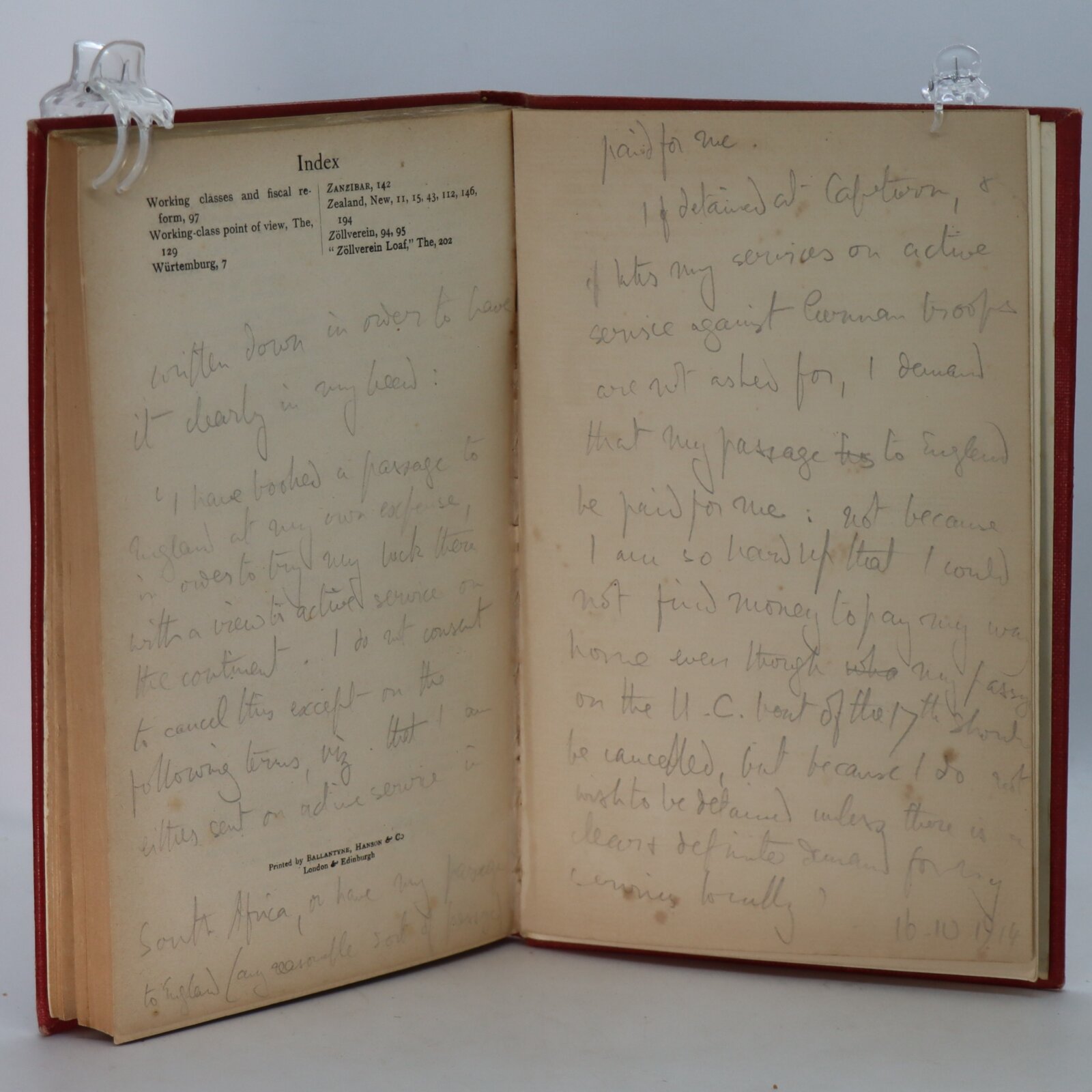 From the 1895 general election the Liberal Unionists were in coalition with the Conservative Party, under Chamberlain’s former opponent Lord Salisbury. In that government Chamberlain promoted the Workmen’s Compensation Act 1897. He served as Secretary of State for the Colonies, promoting a variety of schemes to build up the Empire in Asia, Africa, and the West Indies. He had major responsibility for causing the Second Boer War (1899–1902) in South Africa and was the government minister most responsible for the war effort. He became a dominant figure in the Unionist Government’s re-election at the “Khaki Election” in 1900. In 1903, he resigned from the Cabinet to campaign for tariff reform (i.e. taxes on imports as opposed to the existing policy of free trade with no tariffs). He obtained the support of most Unionist MPs for this stance, but the Unionists suffered a landslide defeat at the 1906 general election. Shortly after public celebrations of his 70th birthday in Birmingham, he was disabled by a stroke, ending his public career.