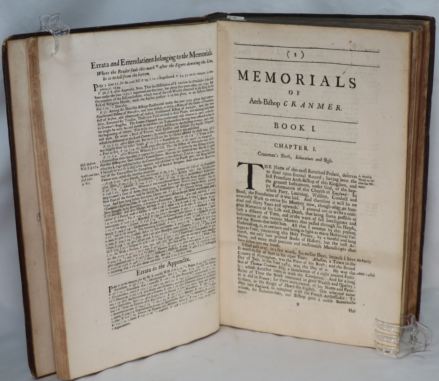 Book Description ‘Memorials of the most Reverend Father in God, Thomas Cranmer, sometime Lord Archbishop of Canterbury. Wherein the history of the Church, and the reformation of it, during the primacy of the said archbishop, are greatly illustrated; and many singular matters relating thereunto, now first published. In three books. Collected chiefly from records, registers, authentic letters, and other original manuscripts. By John Strype, M.A.’