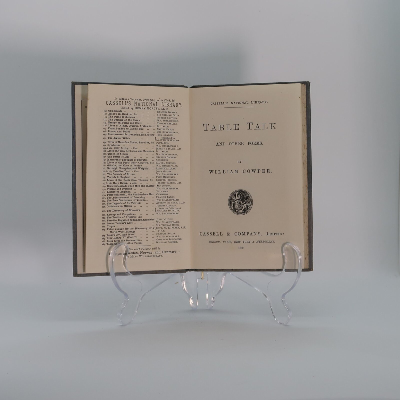 “Table Talk and Other Poems” is a collection of didactic poems by William Cowper, all in heroic couplets after the manner of Alexander Pope.