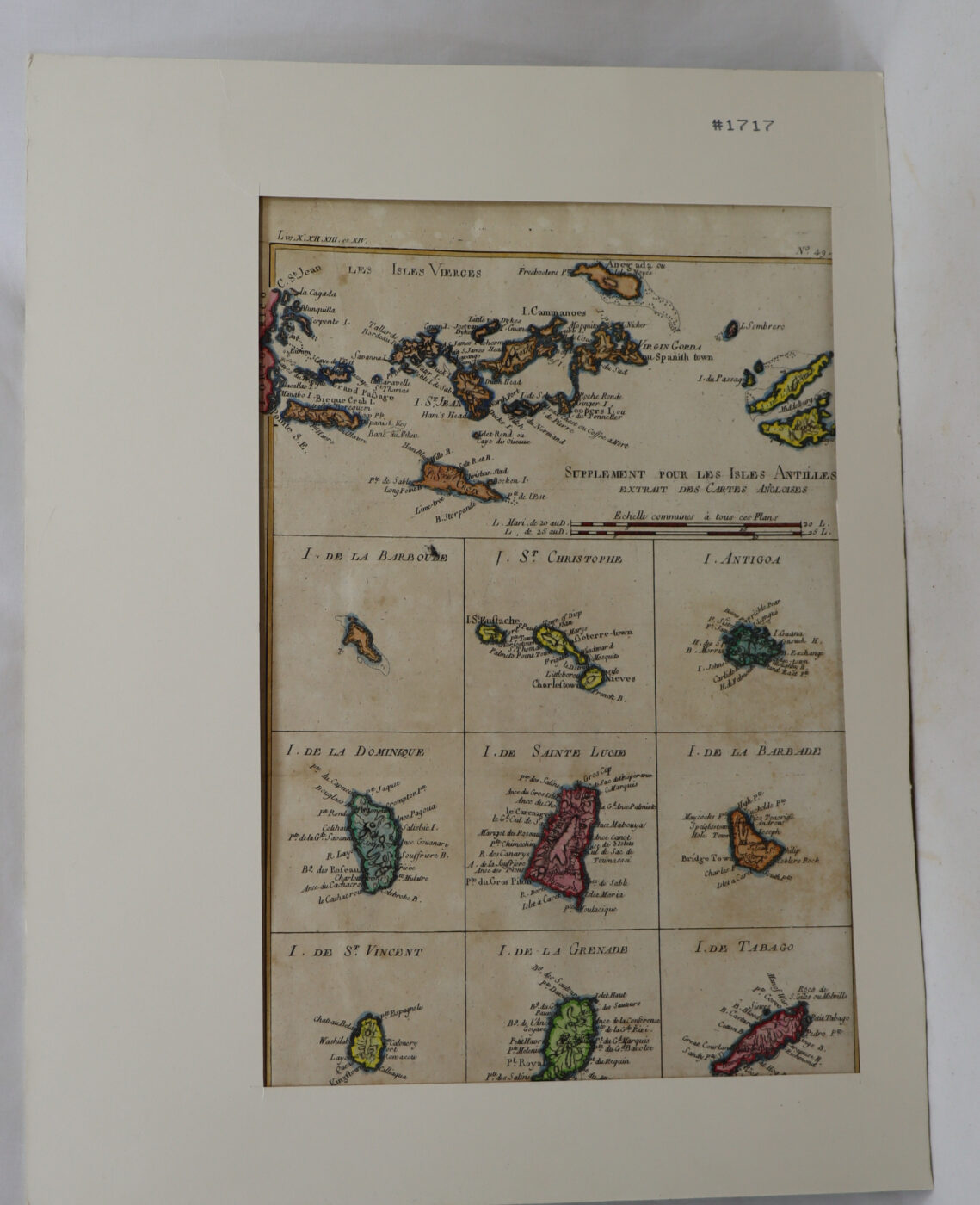To illustrate the work of the Abbé Guillaume-Thomas Raynal entitled “The Philosophical and Political History of the Establishments and Commerce of the Europeans in the Two Indies”, normal horizontal centerfold from an atlas, 1780 Geneva Pellet Publisher, very good condition. The map represents: the Virgin Islands, Barbuda, Saint Kitts, Antigua, Dominica, Saint Lucia, Barbados, Saint Vincent, Grenada, and Tobago.