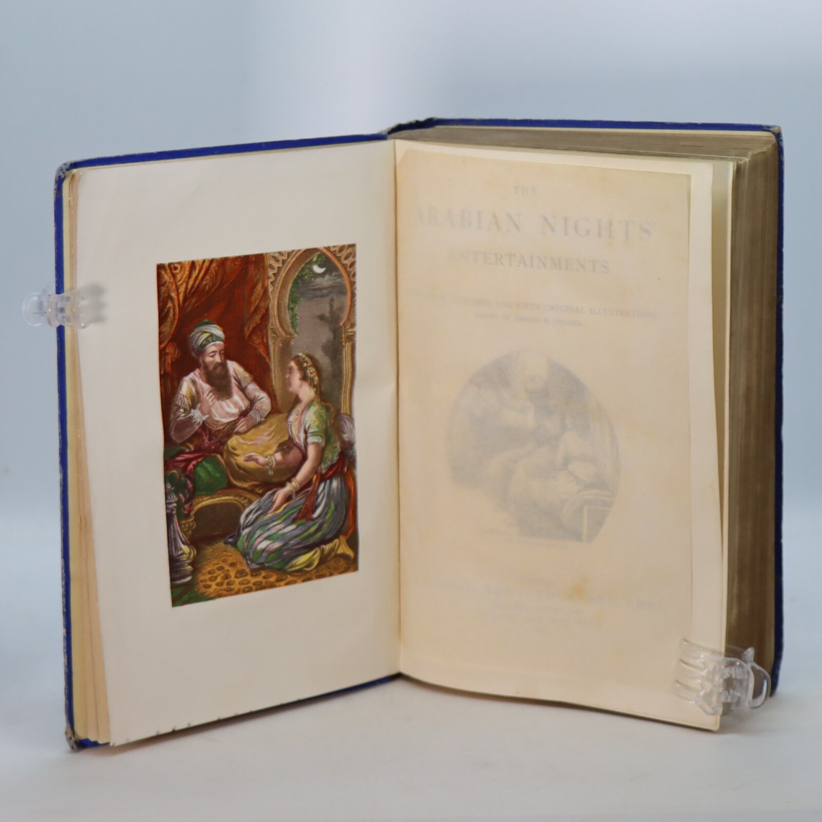 The title Arabian Nights came from the first English language edition (1706), which rendered the title as The Arabian Nights’ Entertainment. The work itself was collected over many centuries by various authors, translators, and scholars across West, Central, South Asia and North Africa. The tales are many and varied, but common throughout all the narratives is the initial frame story of the ruler Shahryār, and his wife Scheherazade….