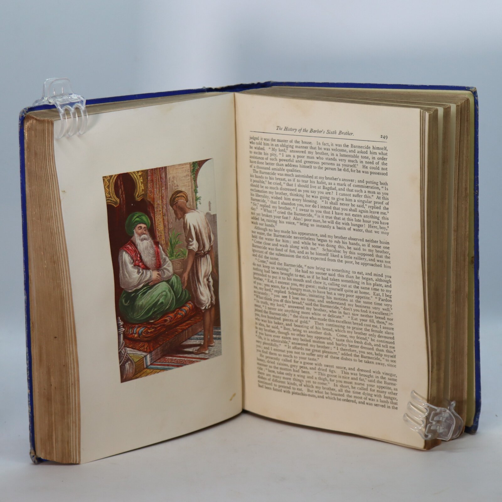 Blue cloth binding with gilt title and turban figures on the front board. All edges gilt.